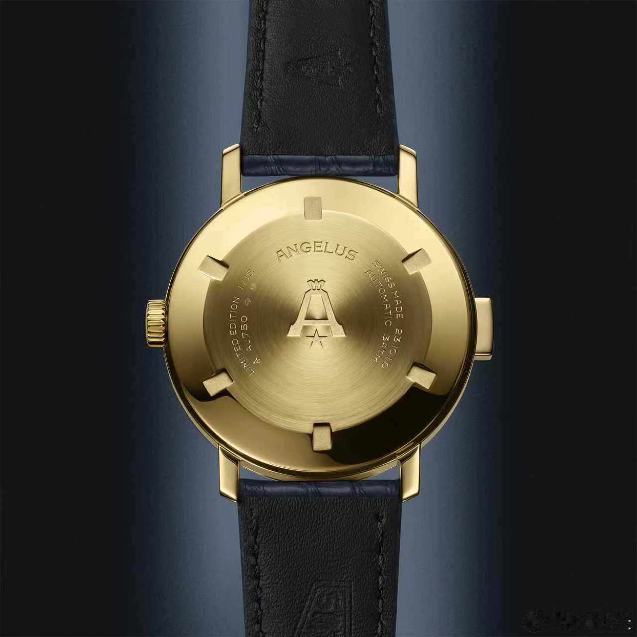 3N 黄金版限量 15 枚,精钢版限量 25 枚。38 毫米表壳尽显 1950 年代设计美学,线条简洁优雅。9 点钟位置表冠与报时按钮呼应,启动二问报时功能。旋入式底盖刻品牌徽记,彰显身份。这款腕表续写 Angelus 在精密计时领域的传奇,承载辉煌历史。