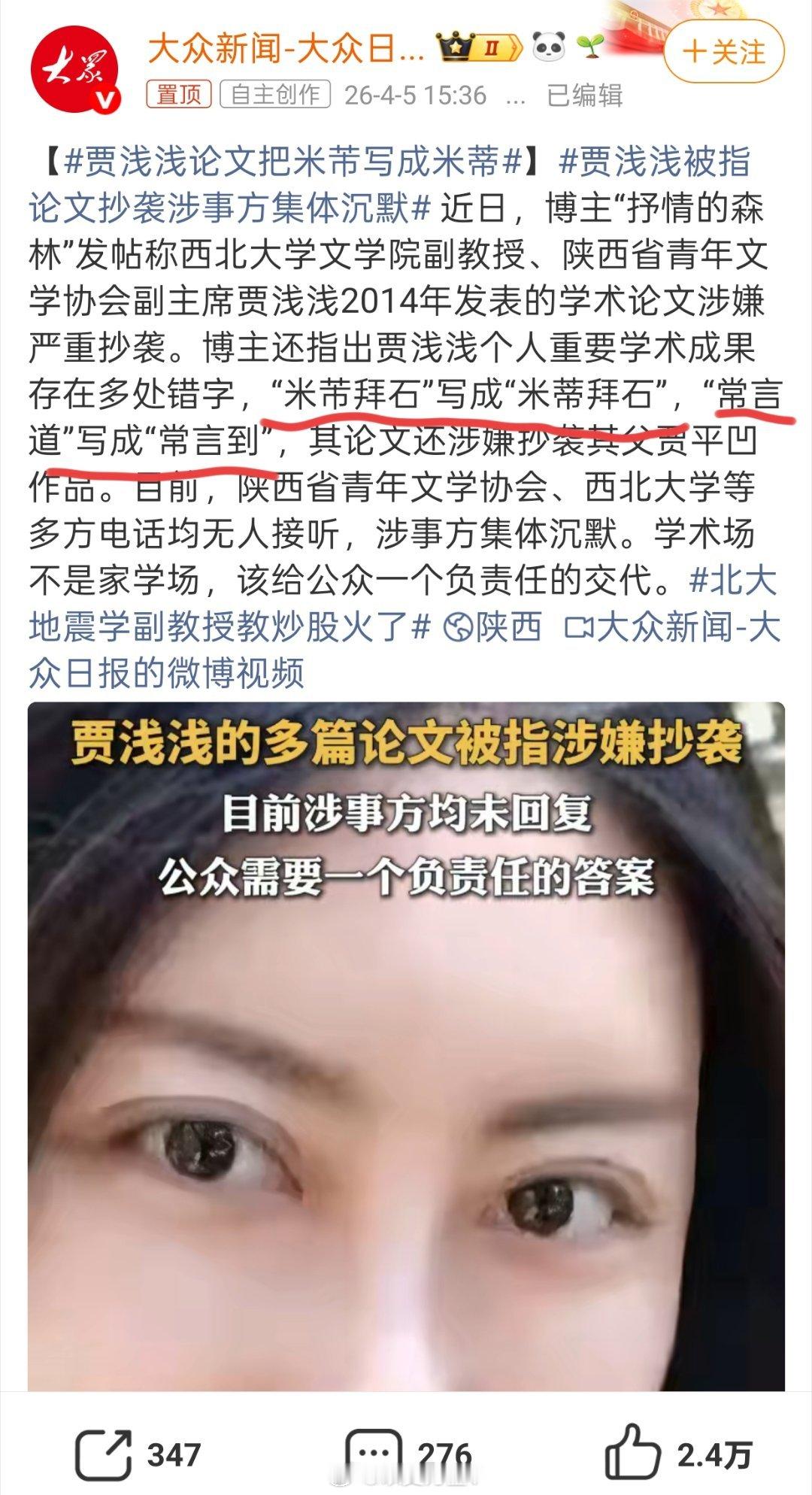 贾浅浅论文把米芾写成米蒂我觉得浅浅专门研究自己老爹,发了多篇论文,其实这个没毛病,近水楼台先得月嘛。
