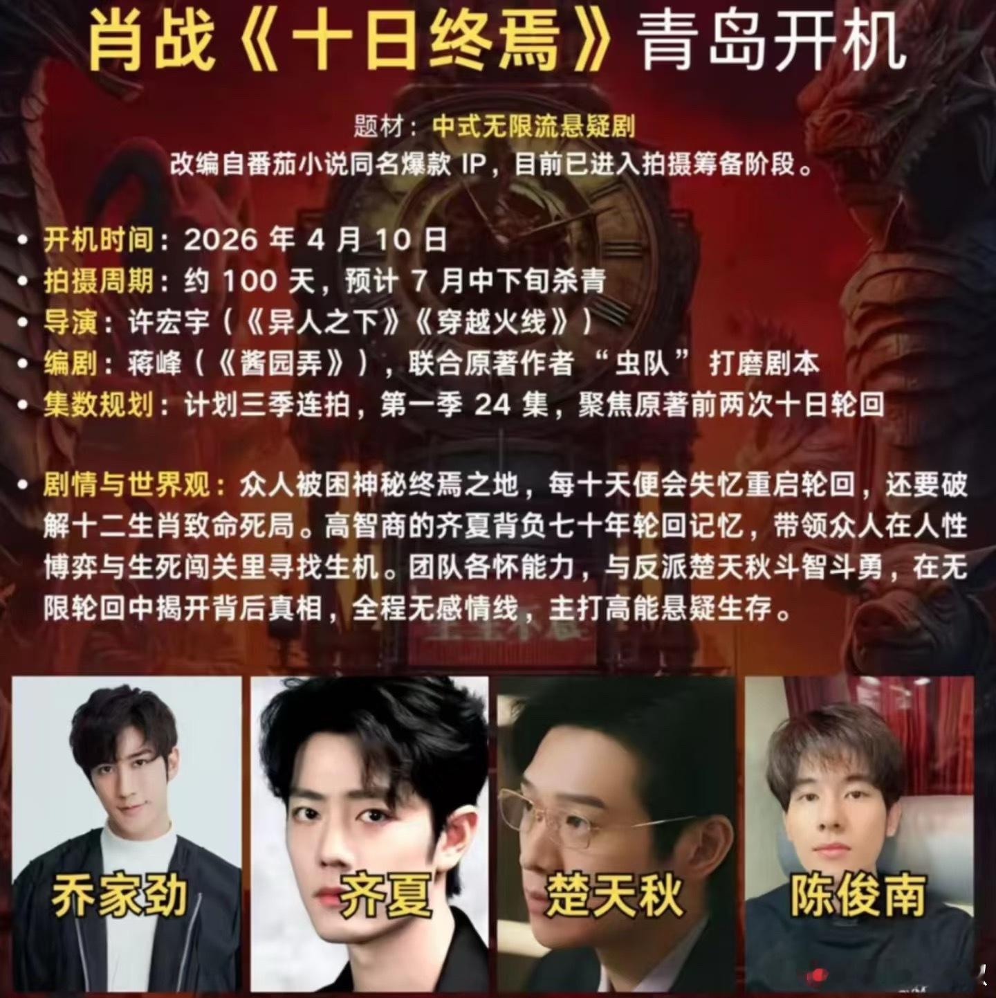 板上钉钉肖战、魏大勋、胡先煦《十日终焉》10号开机