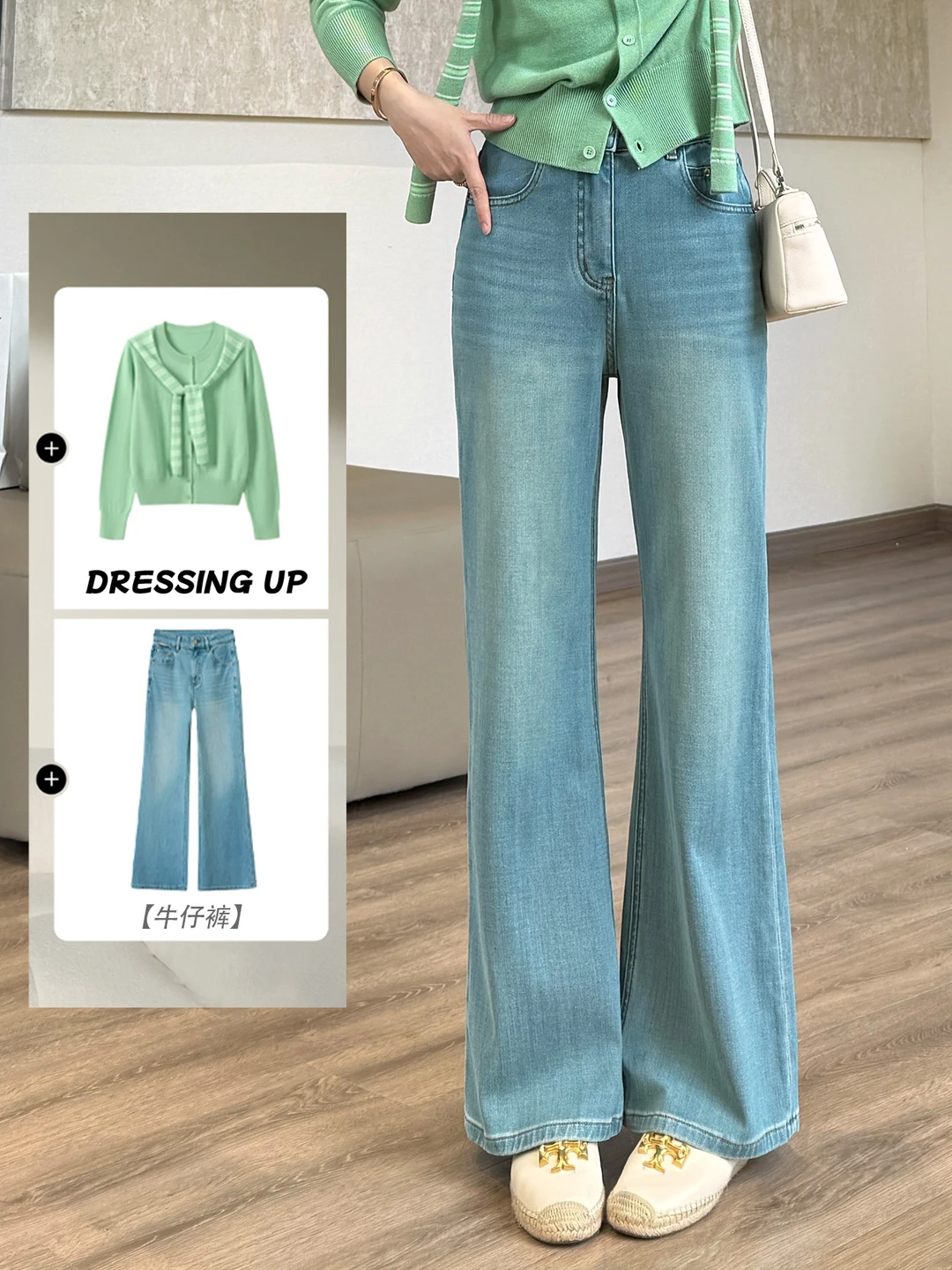 超好穿的裤子👖!版型好 颜色也特别好看! 上短下长的搭配非常显高,一套韩里韩气的 158小个子穿搭 梨形身材穿搭 春夏穿搭 牛仔裤 湖蓝色 微喇裤 显瘦神裤 小个子穿搭 牛仔裤推荐 显瘦显腿长