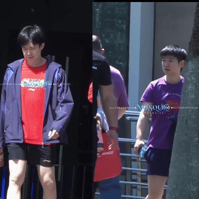 他俩的发型,网友们都说是理一送一,或者是第二件半价, 鬓角都是一样的😂 哈哈哈,莎姐和头哥今天开始在成都训练了, 早上看到的时候,就发现都理发了, 眼尖的网友发现大概是同一个tony剪的, 鬓角都一模一样了。 这次的发型,尤其是头哥,利落青春,很男大的感觉。 莎莎的一直都是这么漂亮。 健康涨球哦。