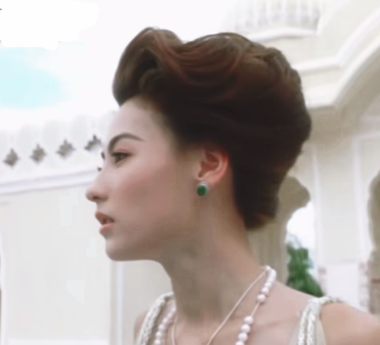 张柏芝,白色挂脖羽毛裙,大秀丝袜大长腿。张柏芝