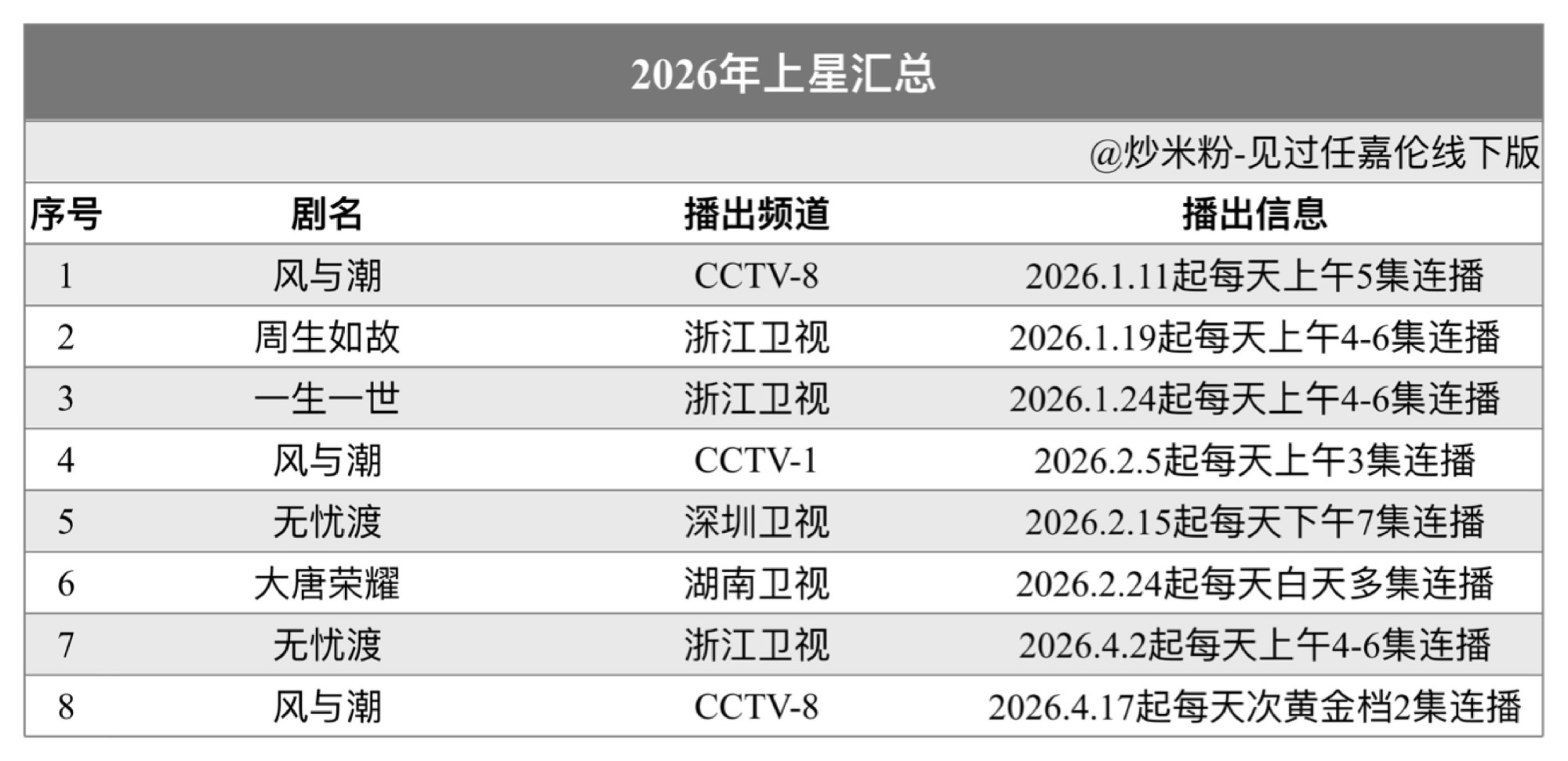 任嘉伦风与潮下周要去央八次黄档重播了,小风潮第四轮上星了!任嘉伦多部剧反复上星中