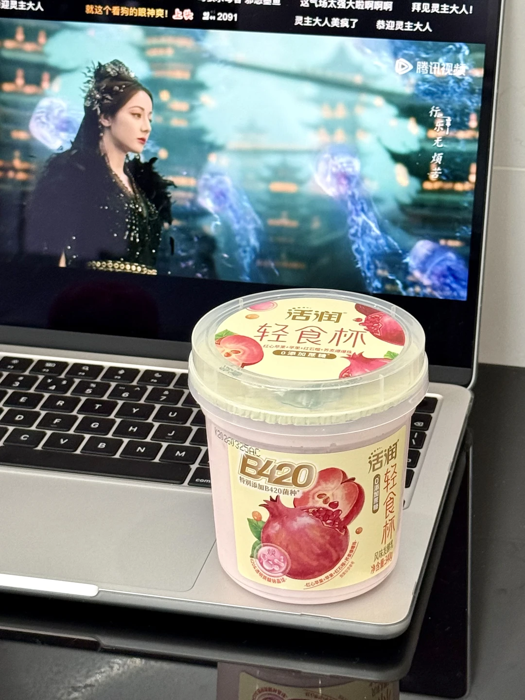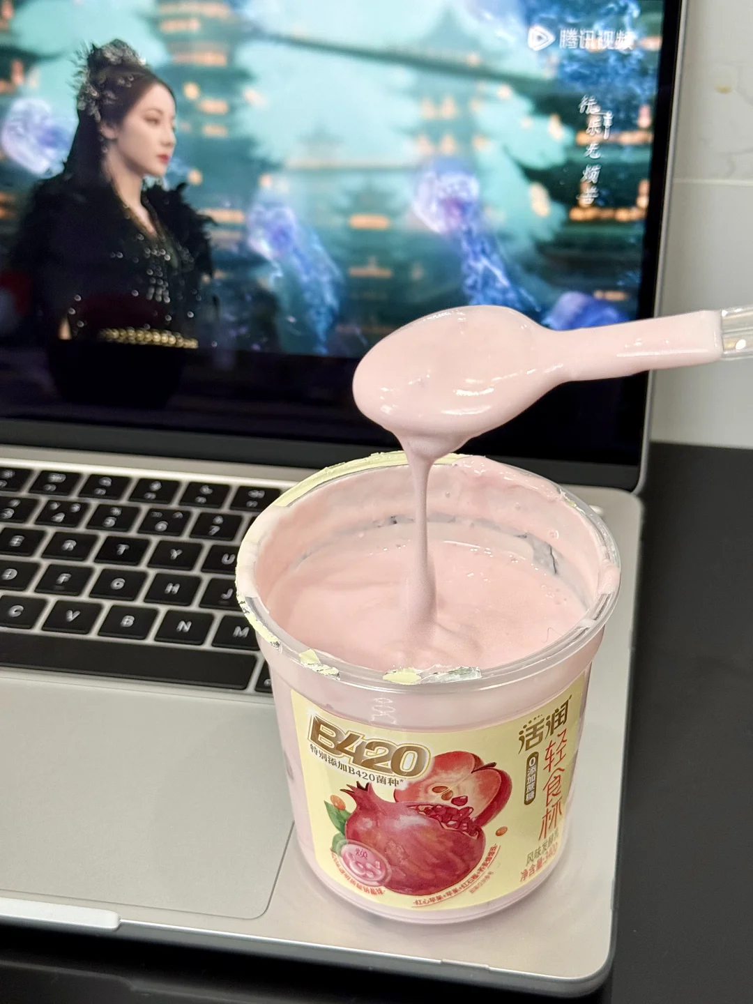 没想到酸奶里面这么舍得放料!!!里面的小料超出想象 爆爆珠还有苹果粒都能吃到 边吃边看热巴新剧 幸福感满满[萌萌哒R][萌萌哒R][萌萌哒R]