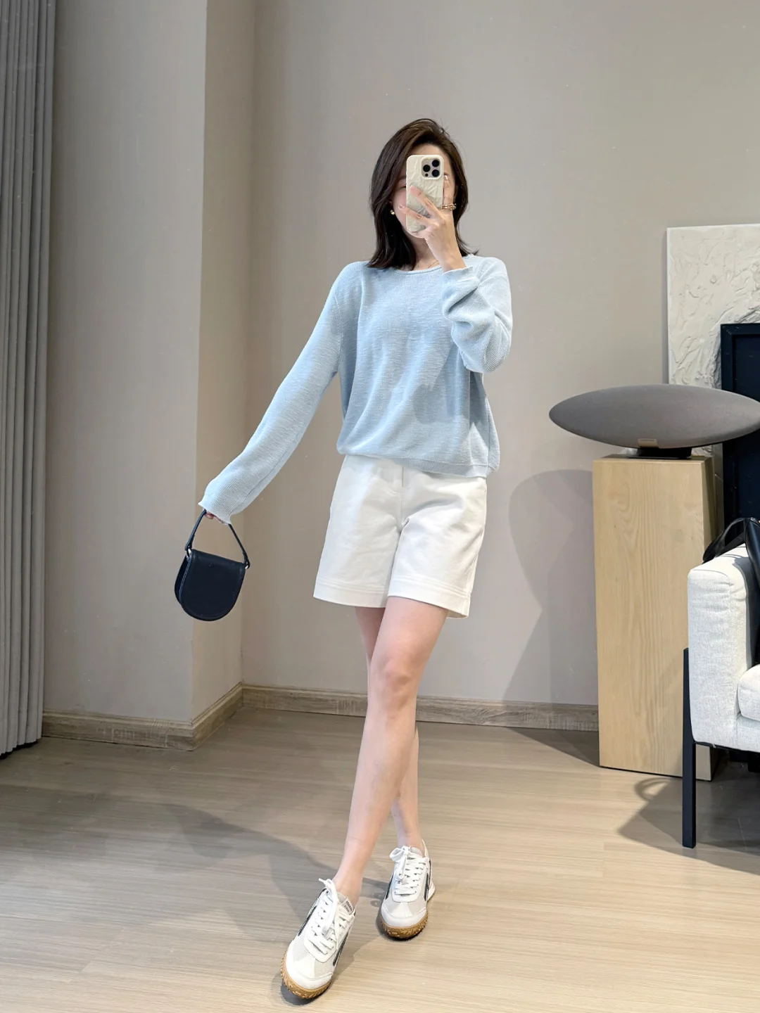 优雅职场风,浅蓝色衬衫搭配灰色高腰裤,气质满分!
