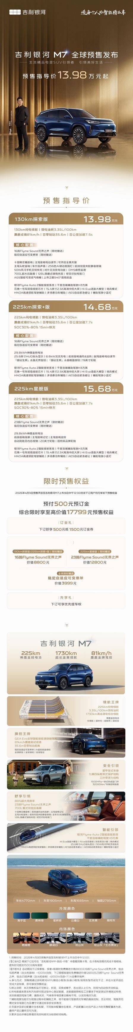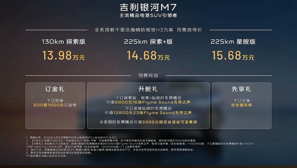 任贤齐认证的SUV主流精品电混SUV引领者今天吉利银河M7正式全球预售~