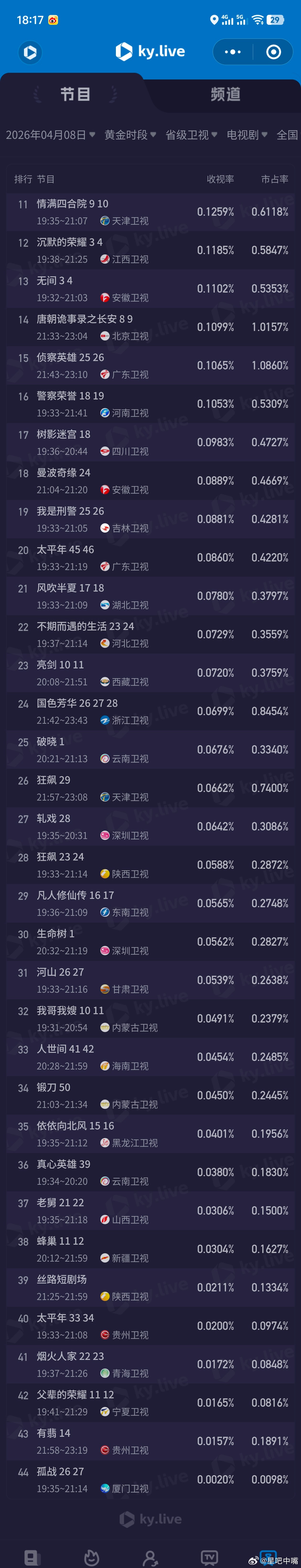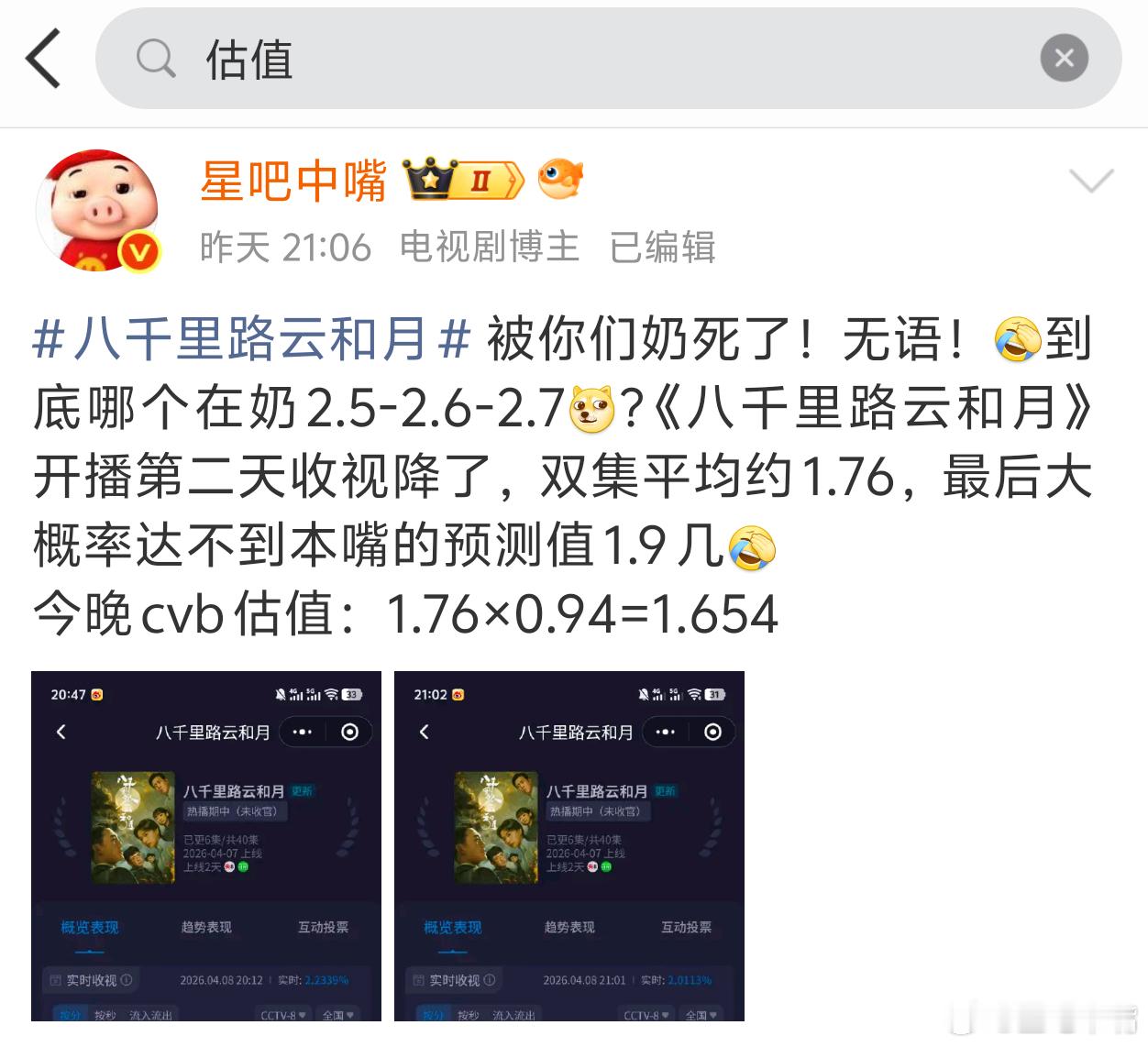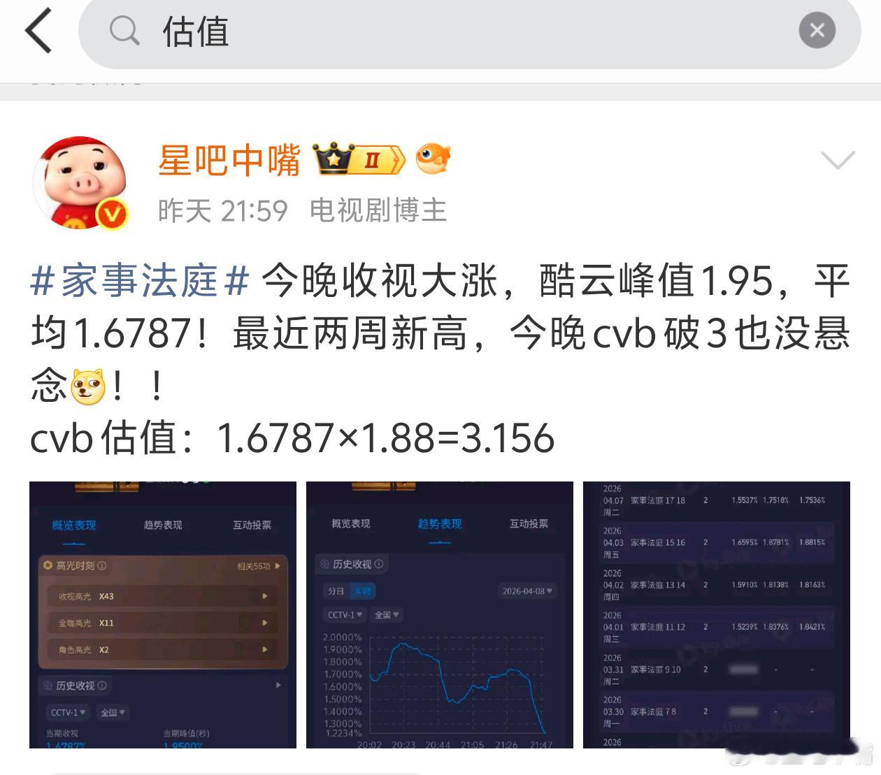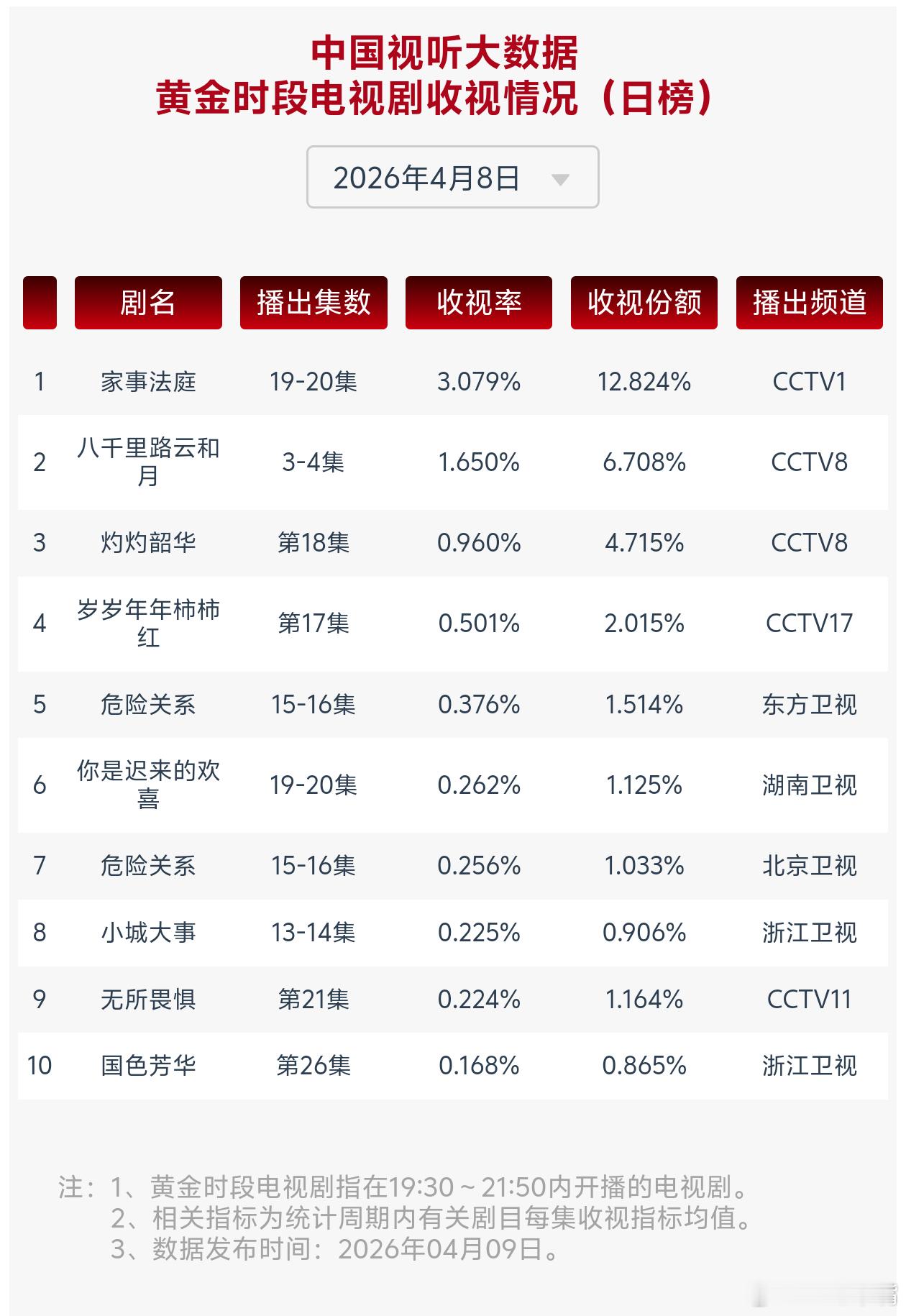 4月8日cvb收视日报,《家事法庭》再次破3!