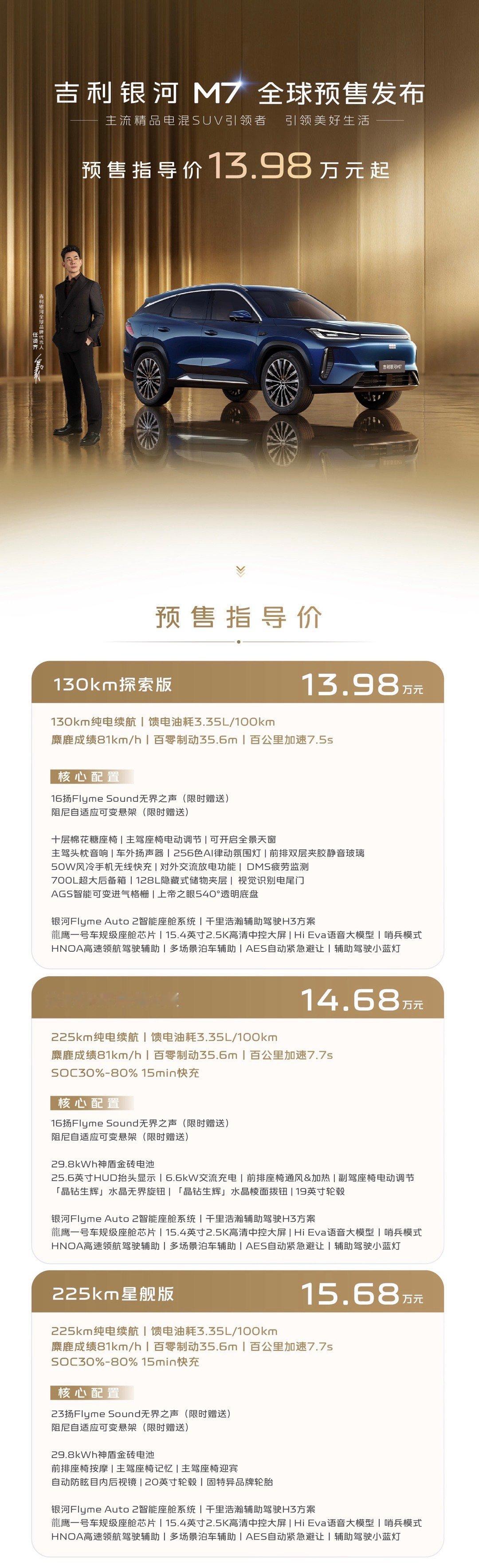 任贤齐认证的SUV吉利银河M7,全球预售指导价13.98万元起!说实话,现在的混