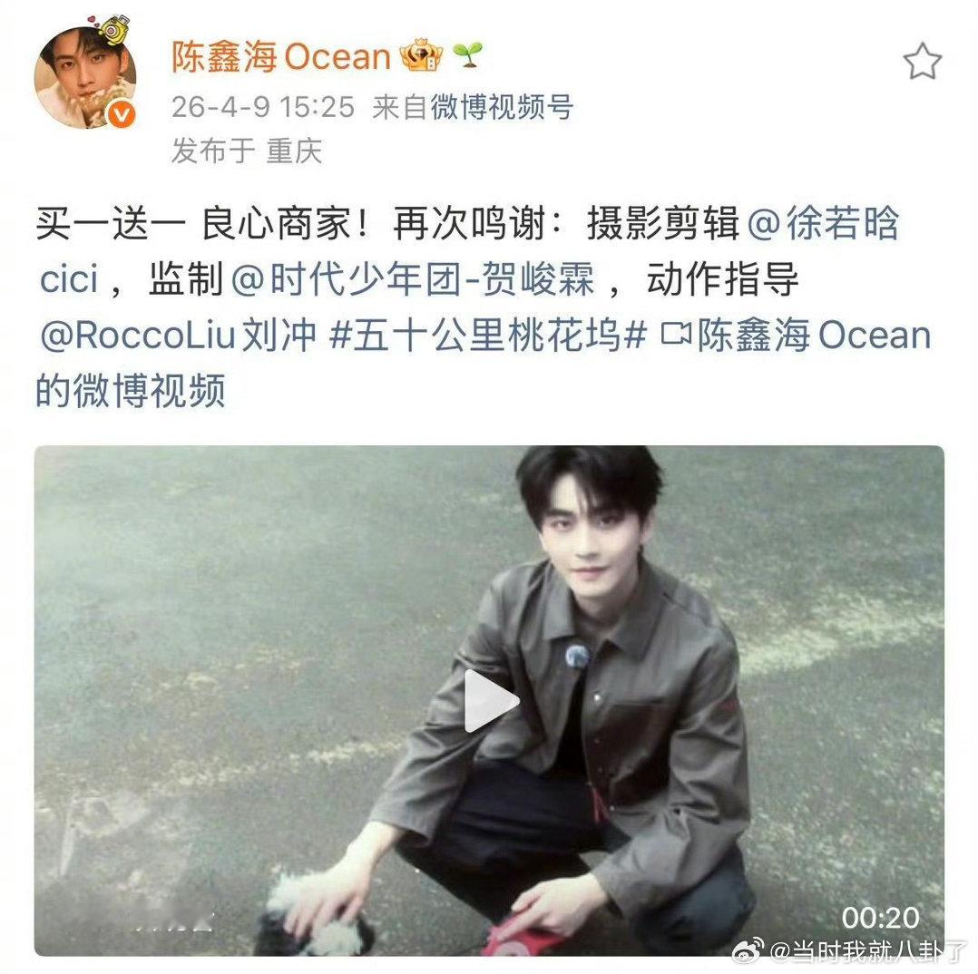 徐若晗拍的陈鑫海徐若晗好会拍,贺峻霖好会监制,刘冲好会指导,陈鑫海好会演,少年感满满,氛围感满满!五十公里桃花坞