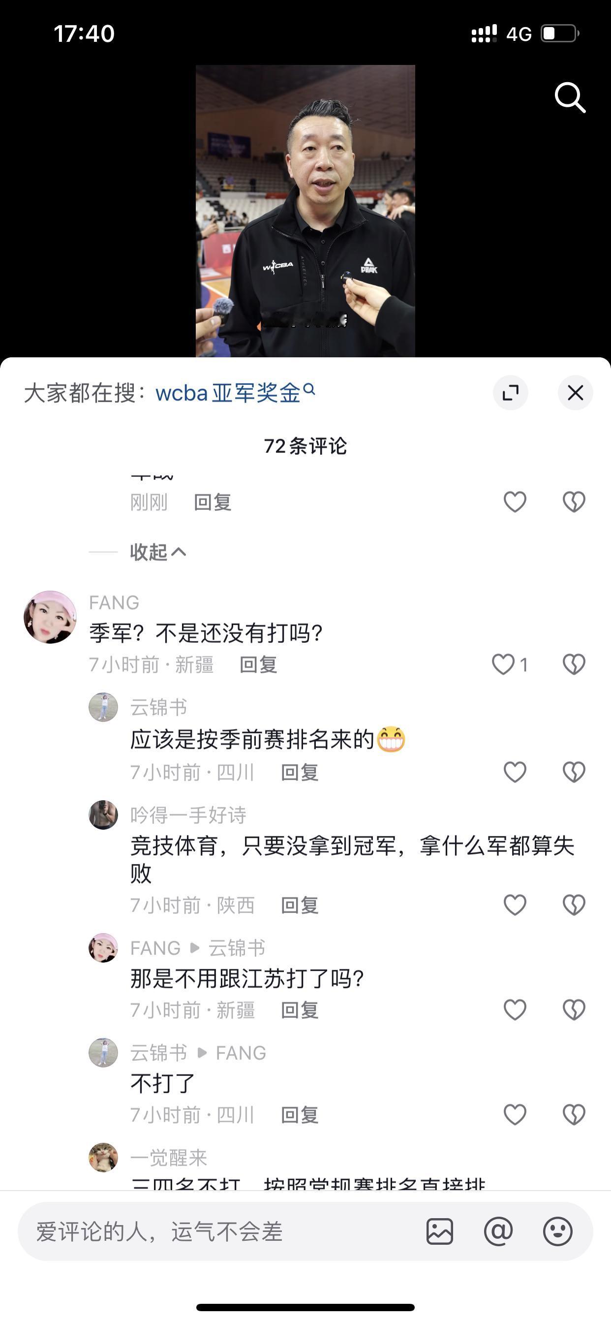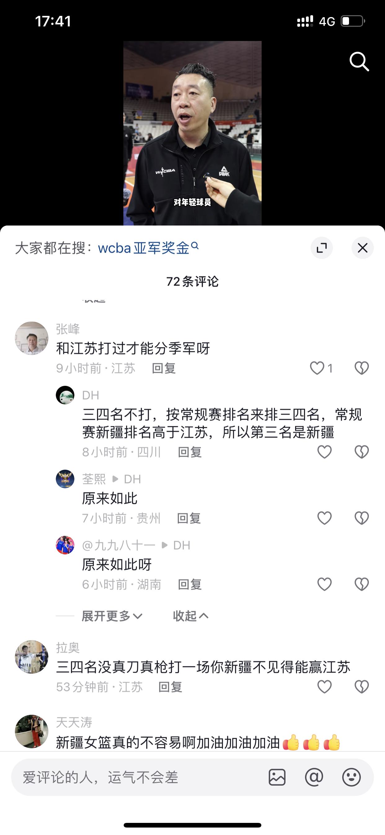 WCBA有史以来就没有什么季军战! 我这样说,是因为从昨天到今天,我这两天在今日头条、抖音等平台的评论区,看到很多人在评论说 “新疆女篮还没有跟江苏女篮进行季军战,怎么就确定新疆女篮成为2025-2026赛季第三名了呢?”(请看下面截图内容) 我真是纳闷,这些人是怎么关注的篮球联赛 先不说国外,单说咱们国内,在中国篮球职业联赛历史中,不分男女,从未有过什么季后赛阶段季军战的赛制设定 所以搞不懂这些人为什么会问出这个问题 而且好多人义愤填膺的在那提出疑问😂