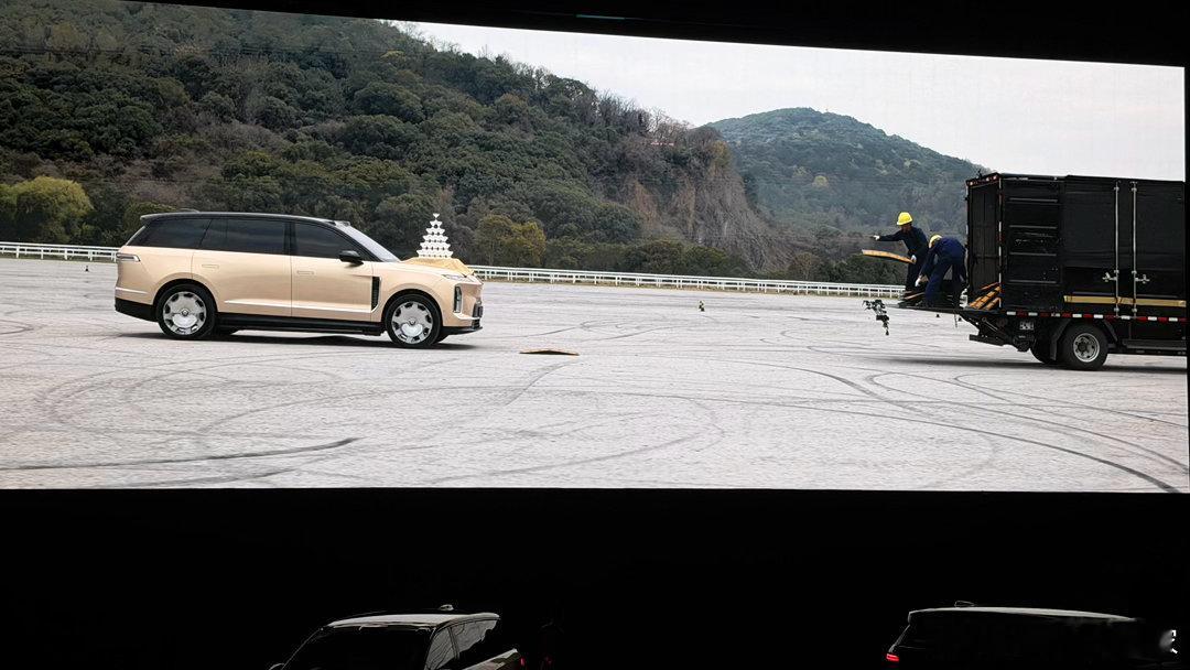 这次蔚来ES9的香槟塔展示,直接让人从前面货车上往下扔减速带,再没有比这更随机的了吧?