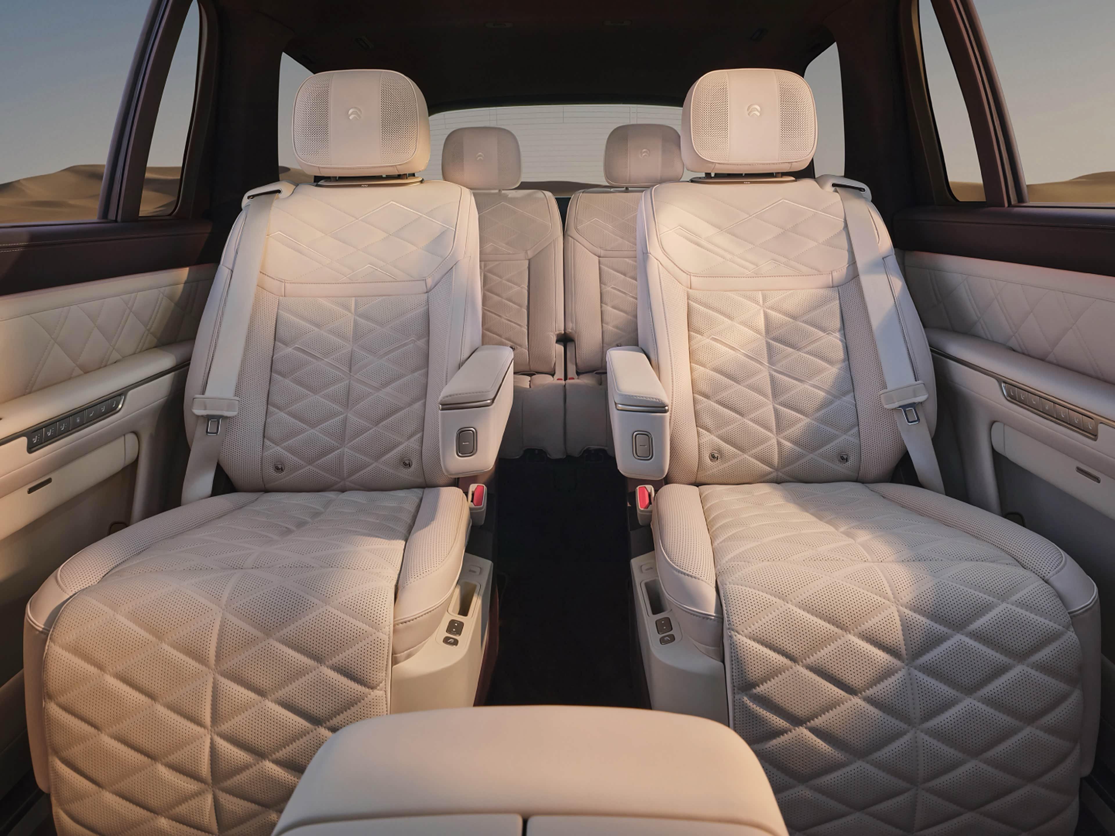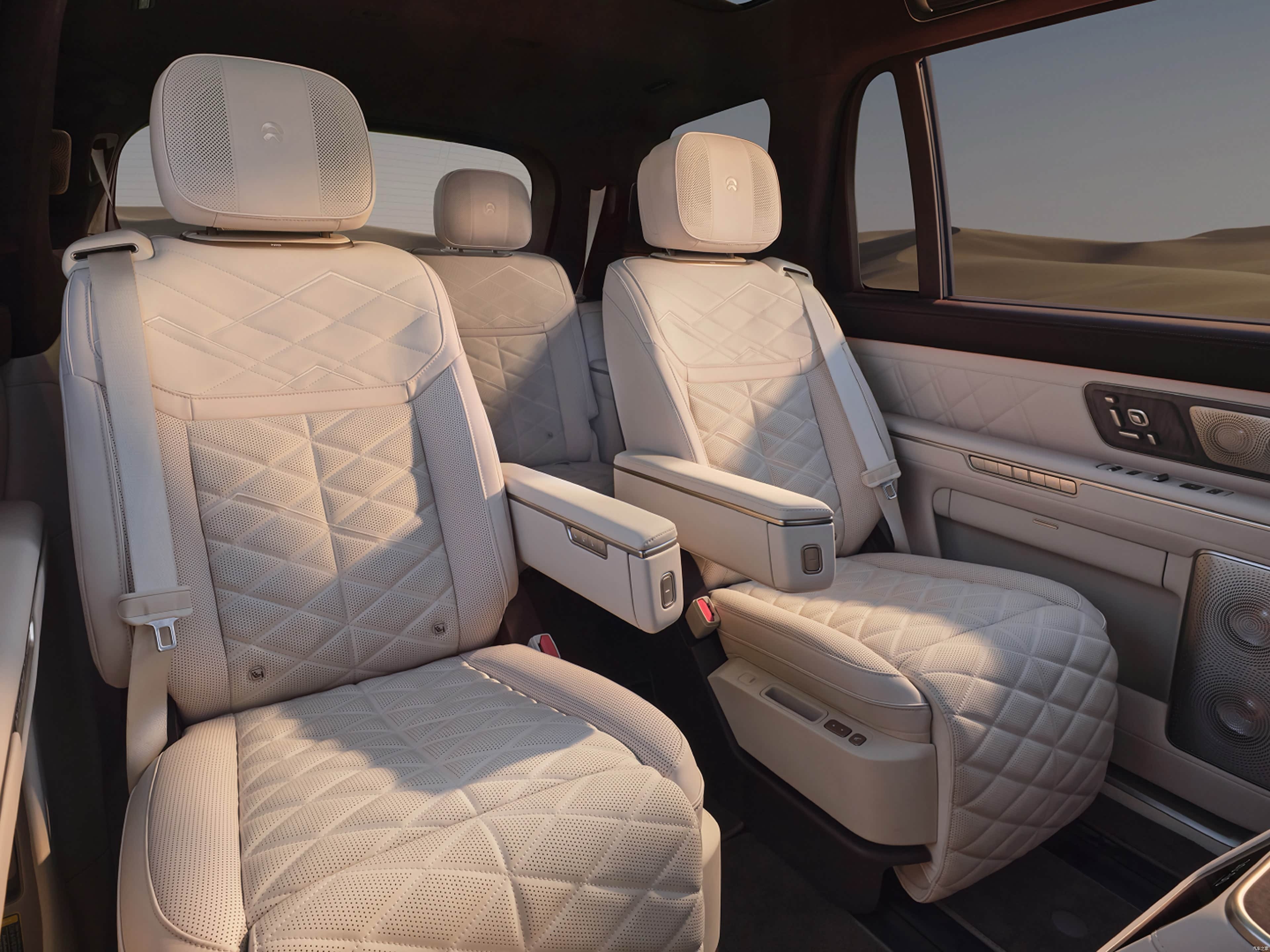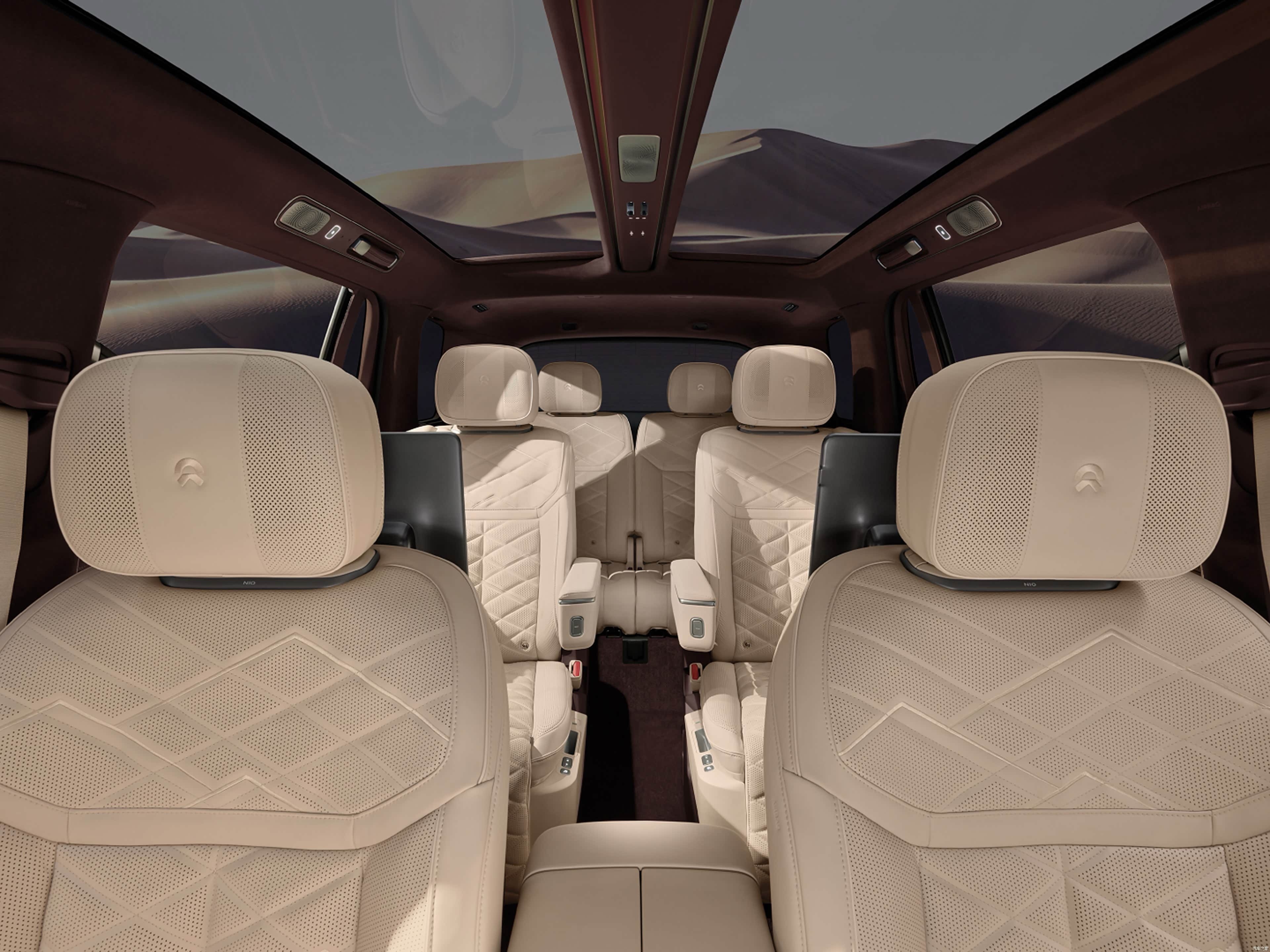 蔚来ES9中国元素蔚来的审美一直都相当在线!ES9在保持了蔚来家族一贯的简约高级设计的同时,还加入了不少中国元素。比如中轴对称的座舱布局,内饰用上的苏绣纹理以及光帆设计、卷帘式隐私玻璃等等,都能让你感受到东方美学的魅力。另外,茶文化,对于咱们国人来说,也是非常重要的。所以,你能看见很多别的车型,有很多后市场的车内茶台改装件。不过,你要买ES9就没这个问题,原厂就给茶台安排上了。此外,这车还有相当多的惊喜,比如900V高压架构、天行全主动悬架、线控转向等等硬核配置。