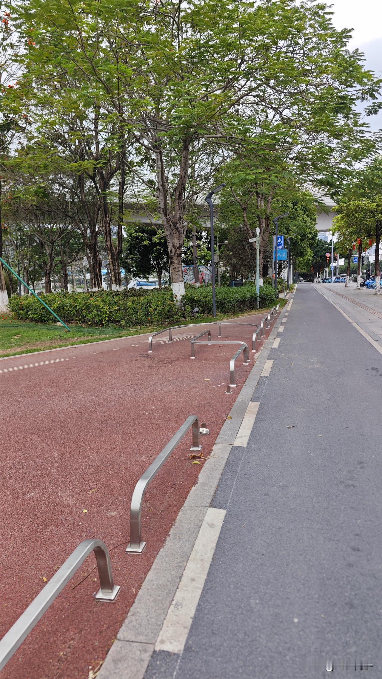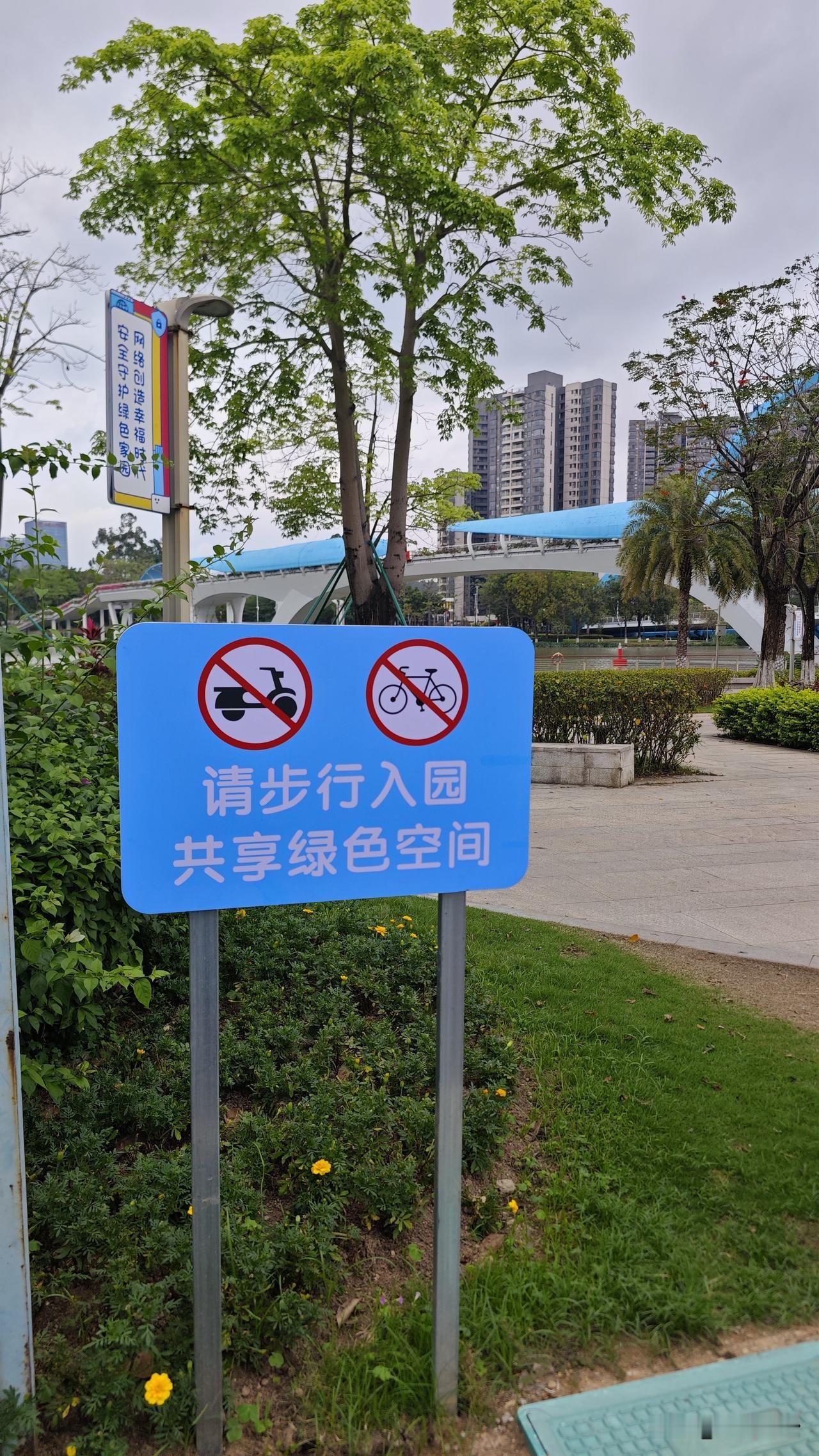 之前我这么说来着?蕉门河公园这小栏杆就是个摆设,压根就挡不住电鸡,而且还真的就让旁边的小草也遭殃了。虽然增加了巡逻人员,但是那么长那么大的公园,怎么可能全部覆盖。 更加有趣的是,看到警示牌子图标来看,不仅电鸡不能进,这是连自行车也不能进的意思?那叫什么骑行道呢?而且这栏杆也更防不住自行车吧。 真的有点莫名其妙了。搞之前就没好好捋一下思路吗?