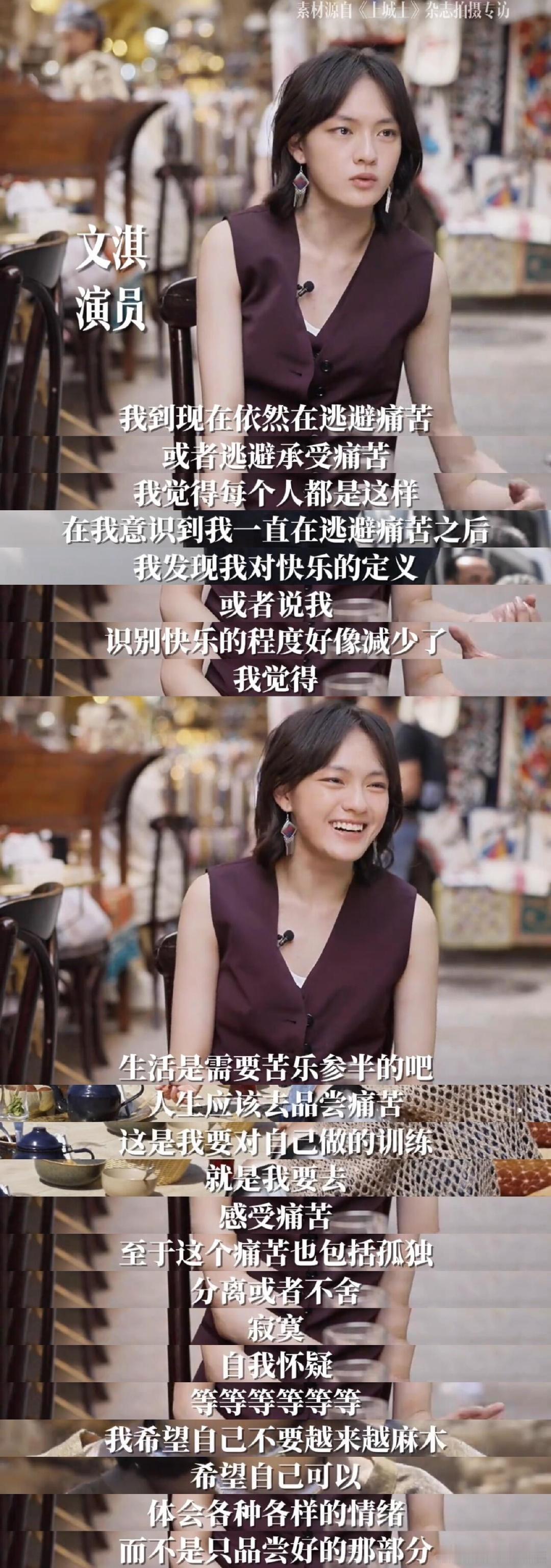 文淇采访遇到大人交流斩鸡技巧 别人接受采访是完成任务,文淇接受采访是聊天交朋友。问她表演心得她认真分享,问她斩鸡技巧她也认真交流。不挑话题不设门槛,跟谁说话都是同一副自然舒展的样子。这种不端不装的状态,在年轻演员里真的是一股清流。