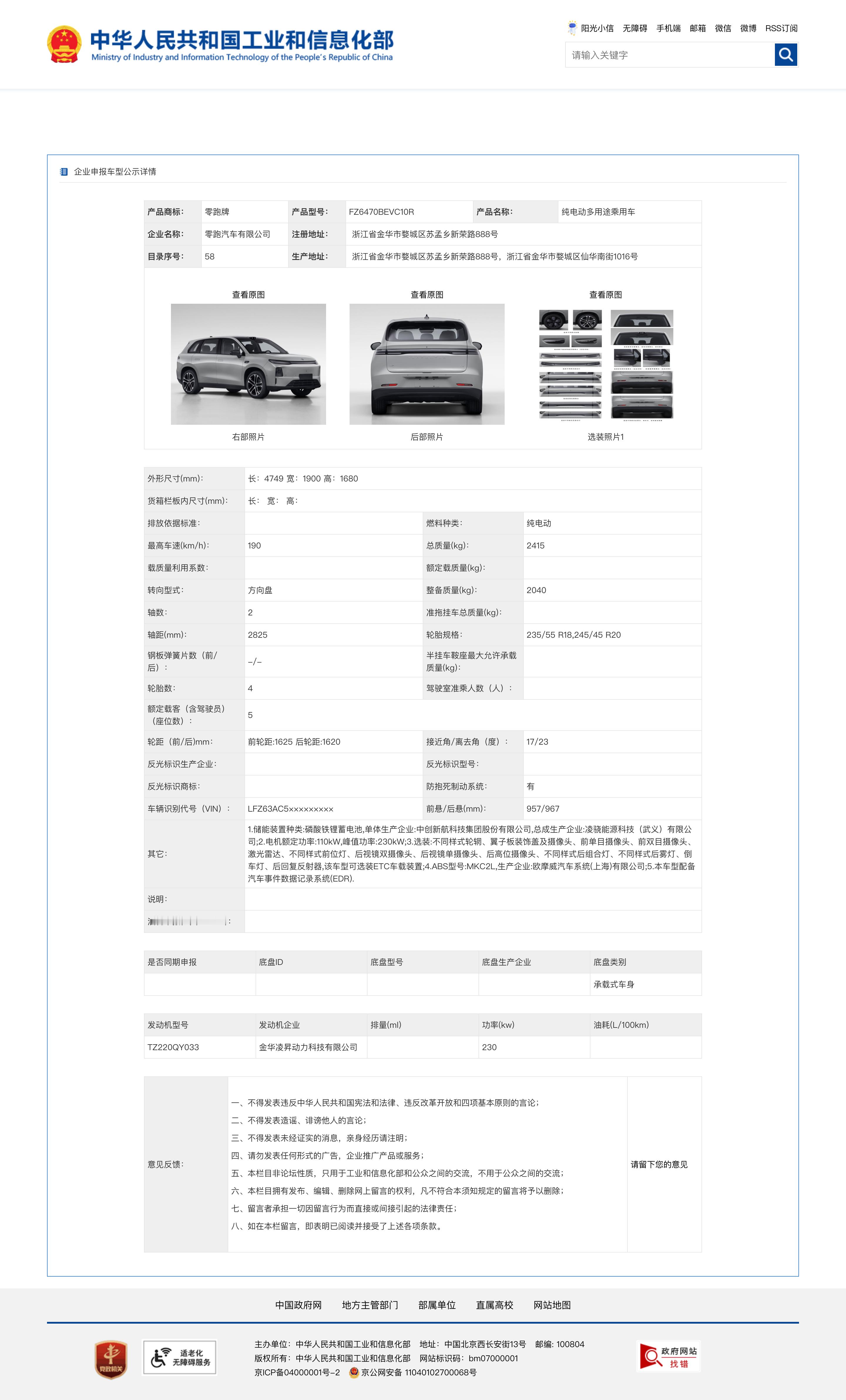 新款零跑C10申报图,采用全新分体式贯穿灯组,增程与纯电版外观统一;车身加长10mm至4749mm,轴距2825mm。增程版电机功率升至200kW,WLTC纯电续航190km;纯电版电机功率提升至230kW,均匹配磷酸铁锂电池。保罗车闻 大v聊车 2026北京车展