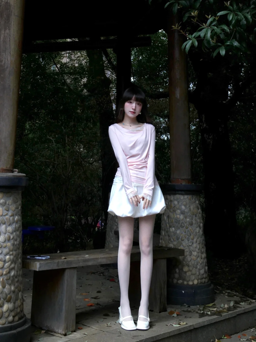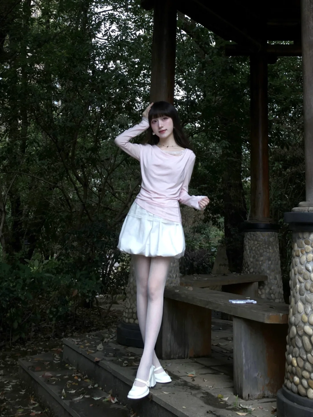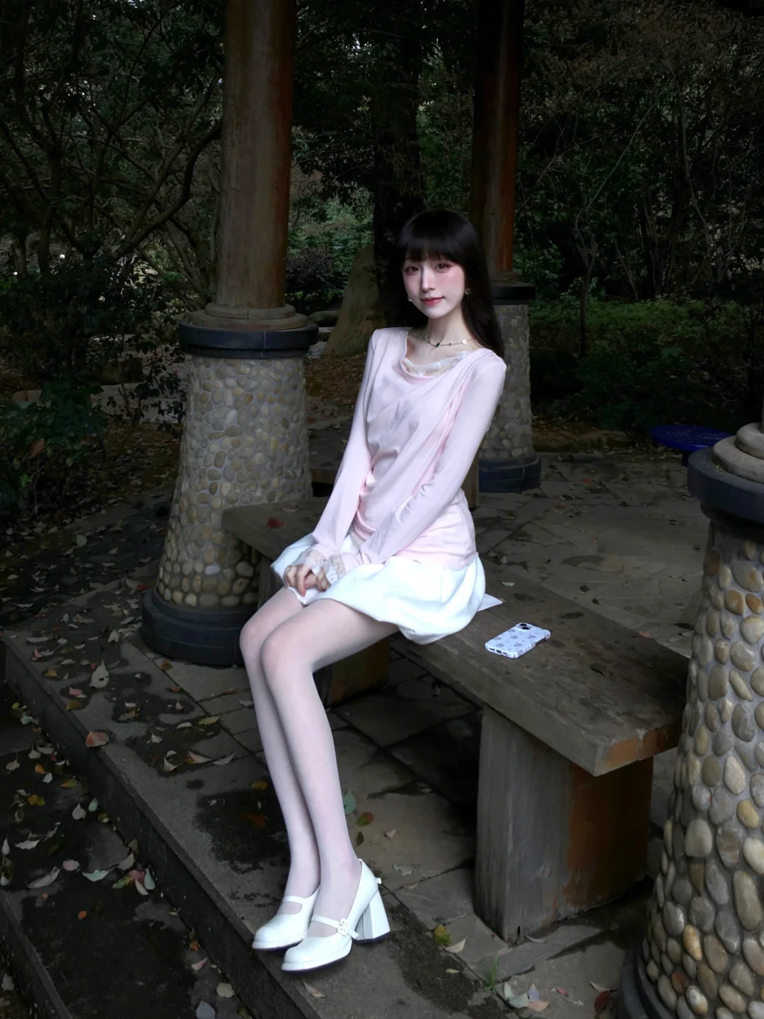 嫩嫩的粉色和蕾丝拼接太少女啦![喝奶茶R]