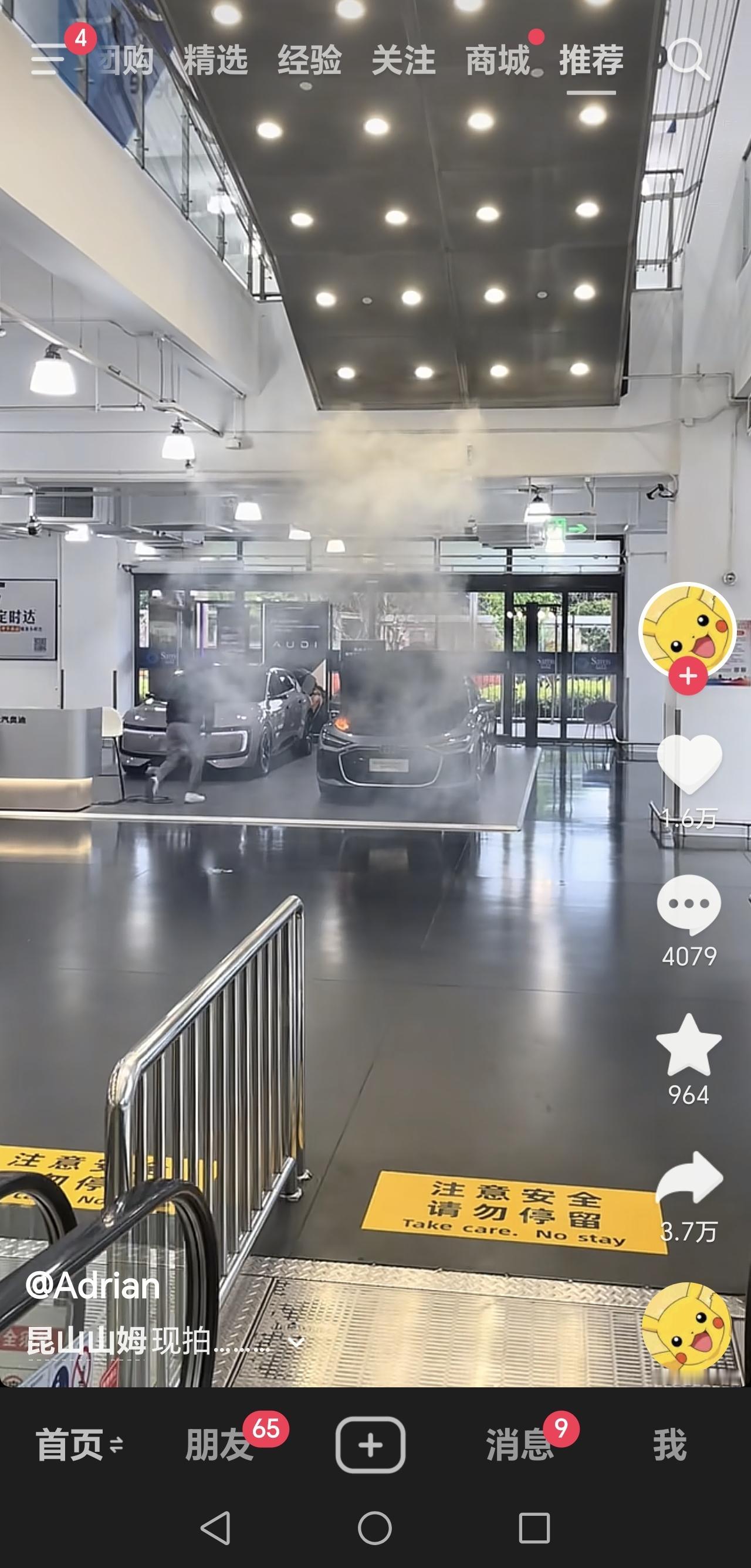 昆山山姆展车出现明火,看位置是小蓄电池?有没有懂行的来说说。