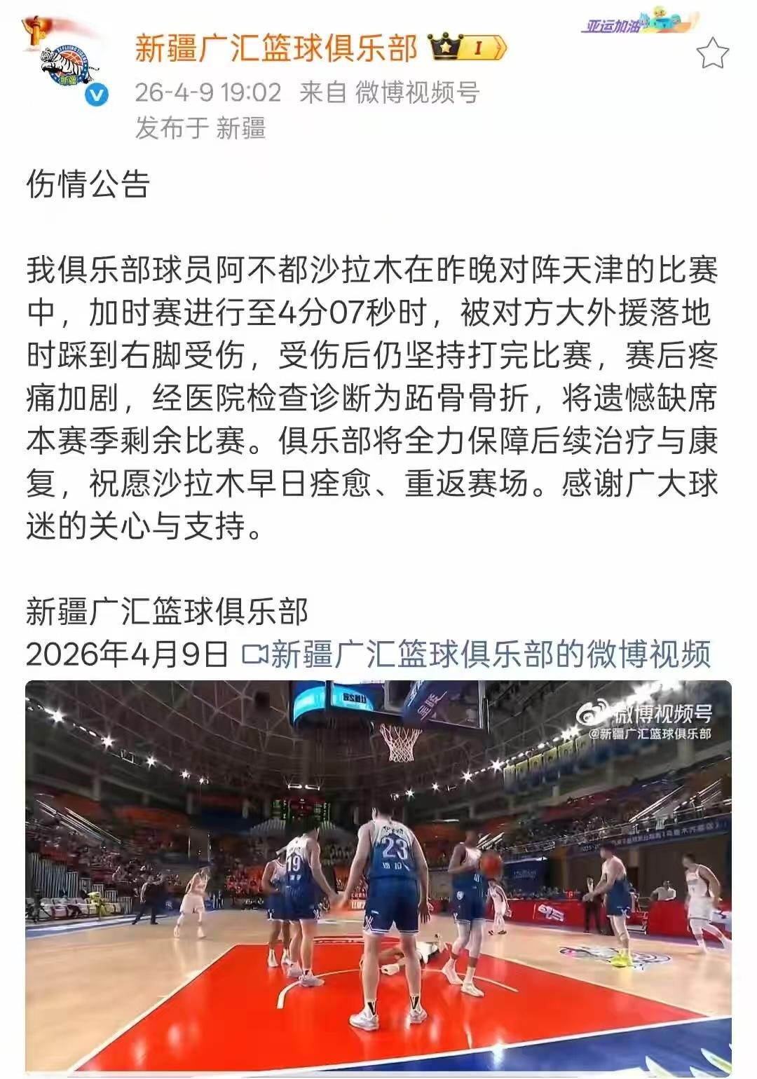 阿不都又受伤,新疆球员受伤一大半,这究竟是谁之过。今日,新男篮宣布,阿不都沙拉木,右脚跖骨骨折,将遗憾缺席本赛季的剩余比赛。这也是没有办法的事!因为格兰逃跑之后,姜正秀上任后,他要打出新疆精神,而且是在新疆男篮伤了一大半主力后,还要打出新疆精神。而要想打出新疆精神,不拼怎么能行。而在残阵的基础上,不重用尚能打球的阿不都,齐麟,尤其是不重用队长阿不都,又怎么能打出新疆精神呀? 这下完蛋了,阿不都伤了,球队二中锋位置,就不得不启用,一个赛季都没有上过场的艾孜买提,和张庆泽等人了! 这个赛季,新疆队先后伤了朱旭航,吴冠希,希尔扎提,齐麟,伊力福拉提,李炎哲,阿不都沙拉木,而且据说杨芮,葛浩然等人都在带伤做战,简直全队都伤了。是这个赛季,CBA各队中伤员最多的队,真是倒霉到底了!这应该是四大外援不给力的原因所在,但凡外援厉害一点的队,能多承担一些赢球的责任,国内球员也不至伤了一大片的呀!新疆男篮