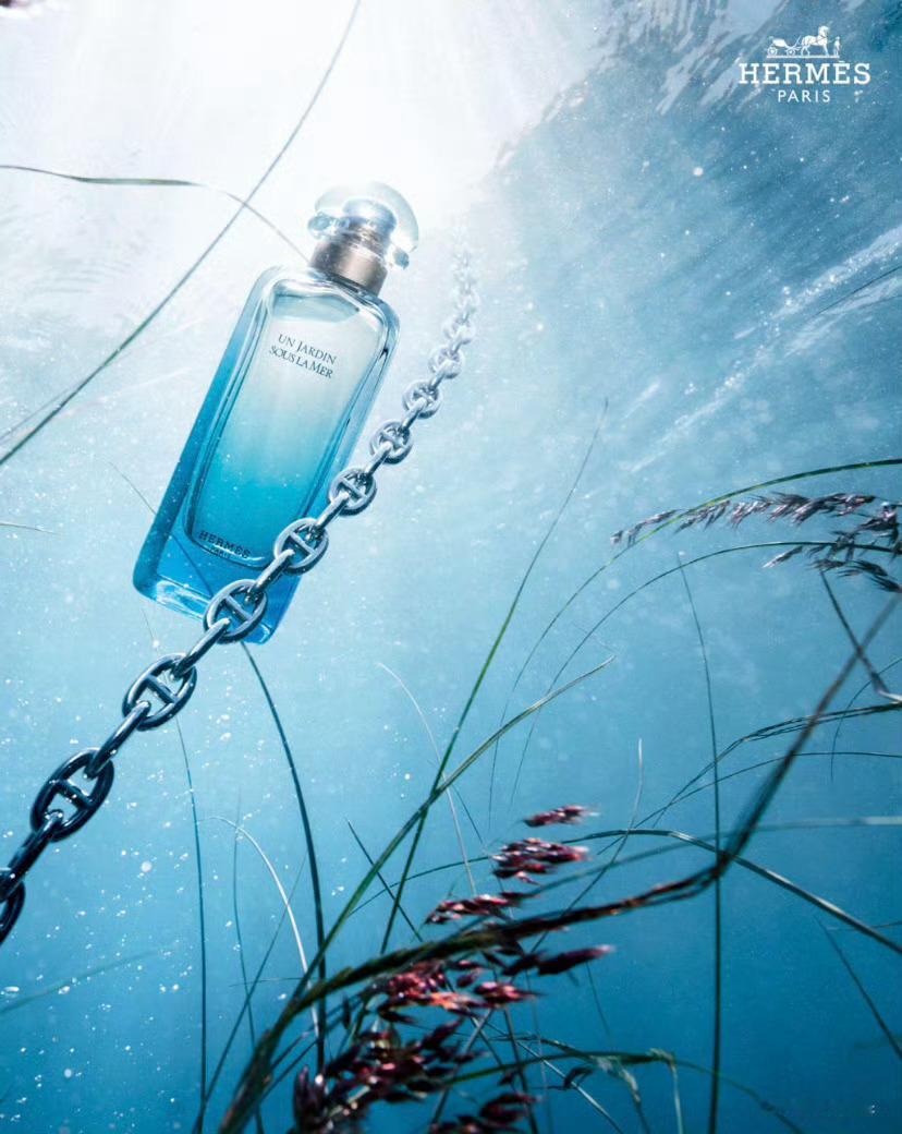 爱马仕这支香水广告图真的好喜欢,把视觉上的“清新香气”展现得淋漓尽致。