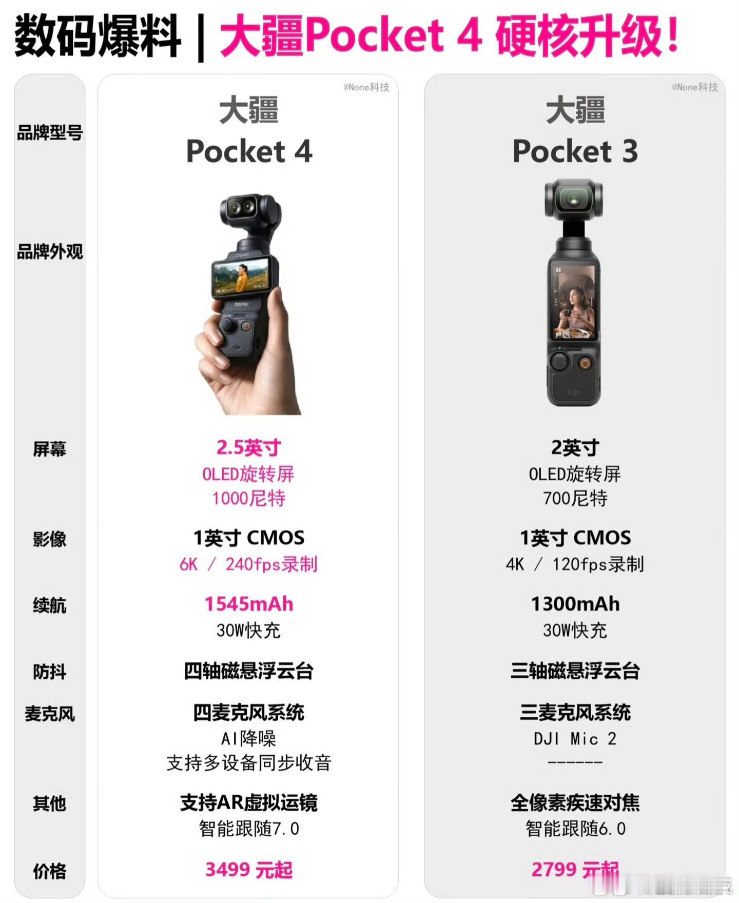 大疆Pocket4一英寸大底的大疆Pocket4将在16号开售!!