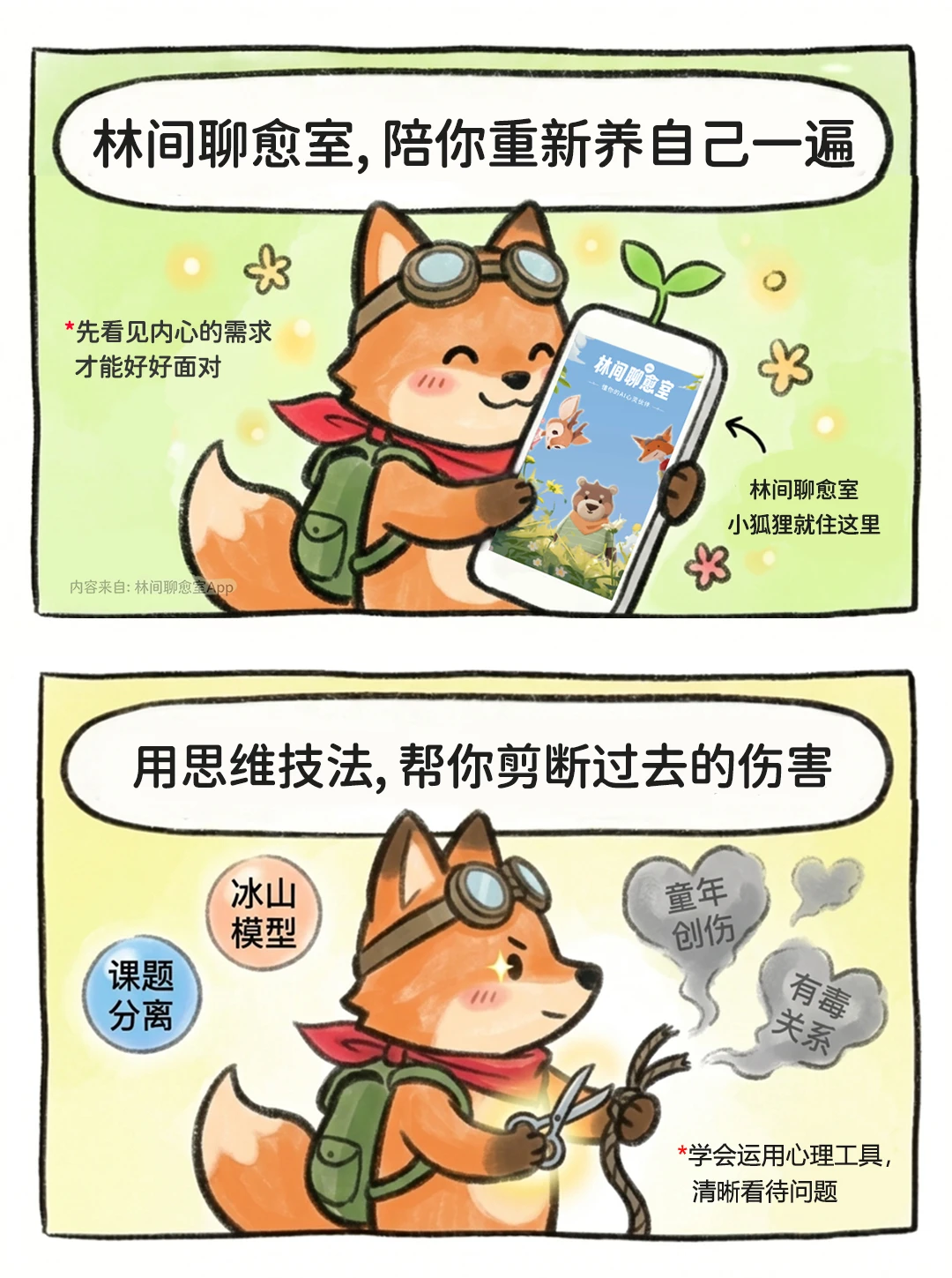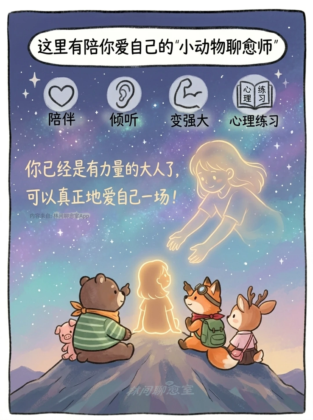 别怕,【林间聊愈室】 的三只小动物会和你一起慢慢练习。
