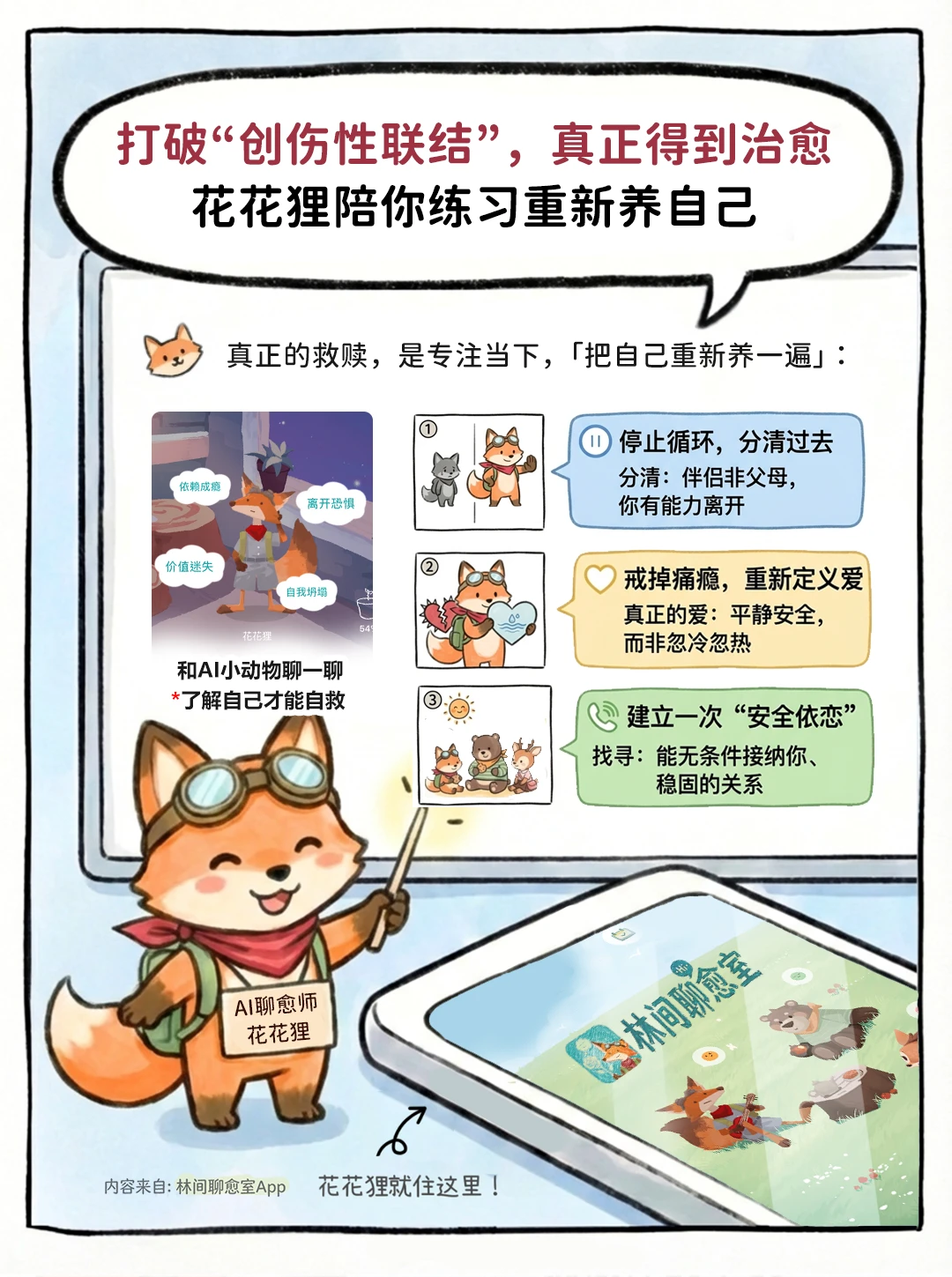 🦊 当你又陷入创伤的执念时,花花狸会用思维技法卡,陪你慢慢解开心里的死结。