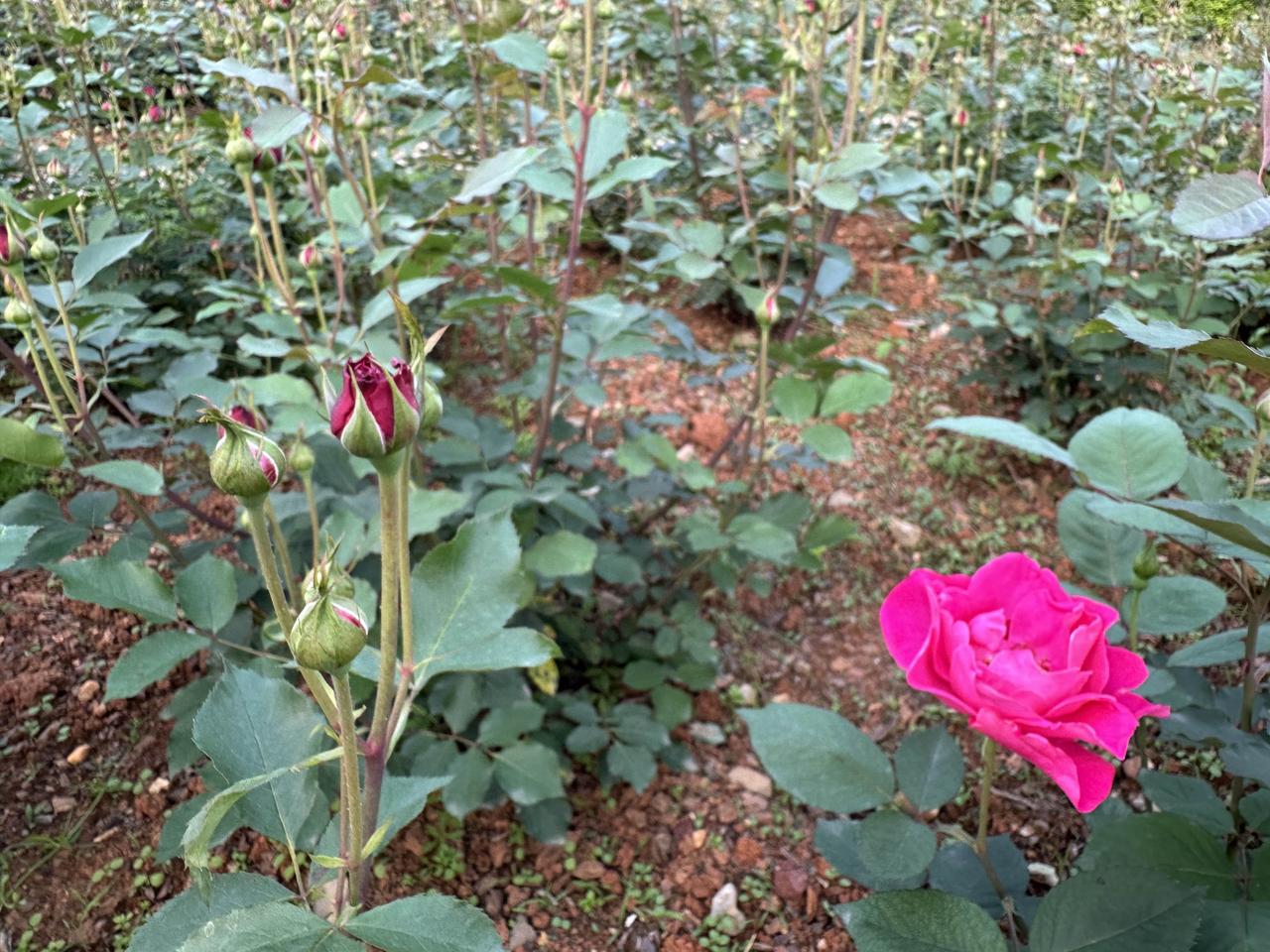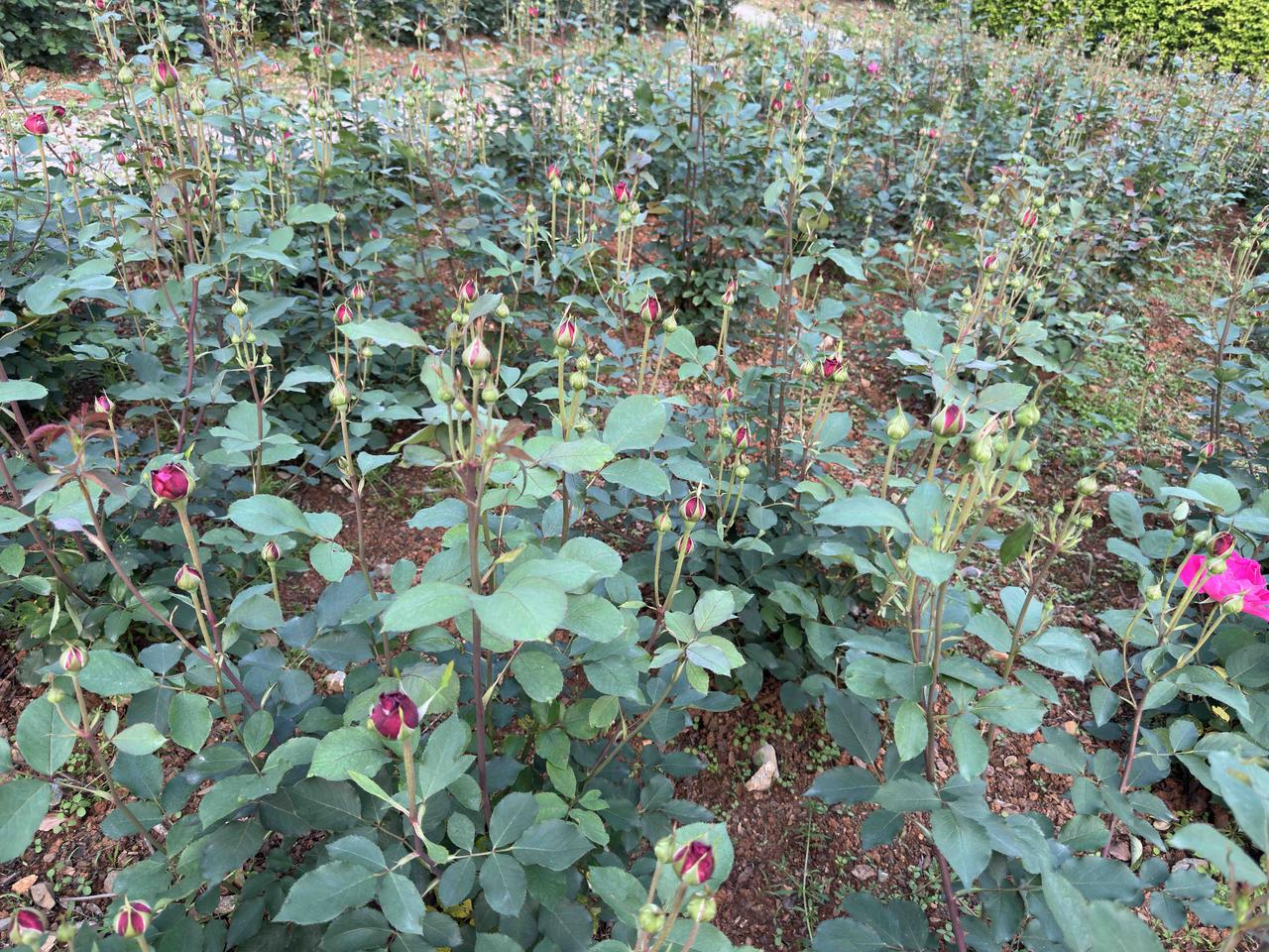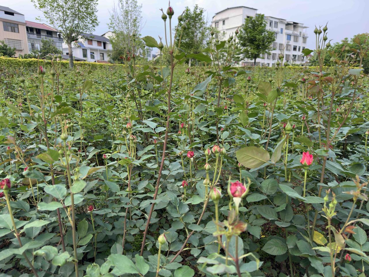 想要月季春天长得好,冬天的时候就应该把残枝败叶全部割除,还要给月季根部松土、施肥、培土、浇水。这一大片的月季这个春天的长势这么好——花蕾无数,蓬蓬勃勃,园艺工人就是这样种出来的。 附近另外一个公园同样的月季就没有这么幸运了,其中一个很重要的原因就是任其自己去奋斗了,冬天的时候没有精心护理,春天的时候怎么可能千朵万朵压枝低呢!