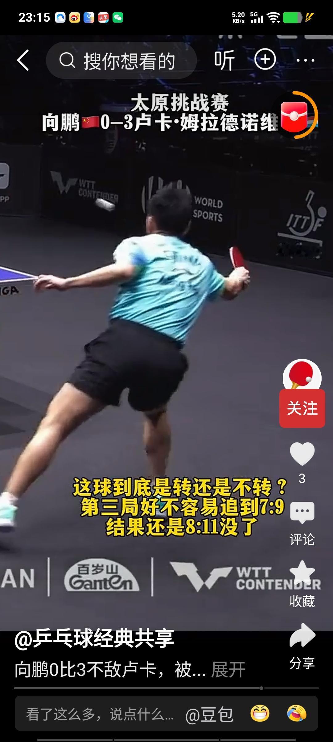 WTT挑战赛太原站,男单一号种子向鹏,竟然0比3输给了卢森堡运动员姆拉德诺维奇,其中第二局是0比9开局,太狼狈了,他可是刚刚选上,参加男团世锦赛的国乒成员,这样的状态,怎能完成夺冠的任务?怎样面对日本这样的虎狼之师?光凭一个王楚钦是不行的,其他队员必须站出来拼搏,向鹏这样的表现,实在让球迷担忧,希望中国教练组,找出原因,调整好心态,打好后面的比赛。