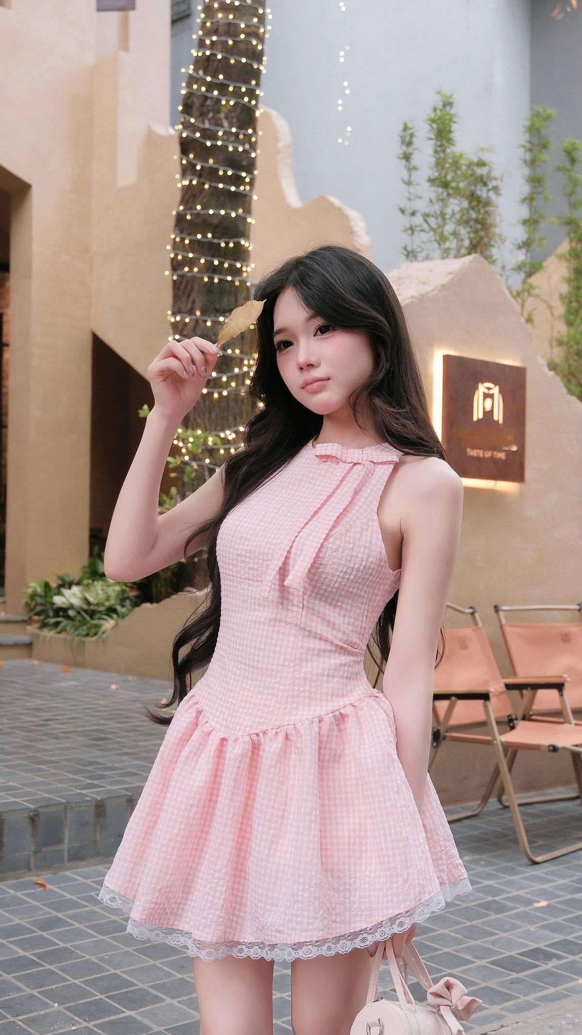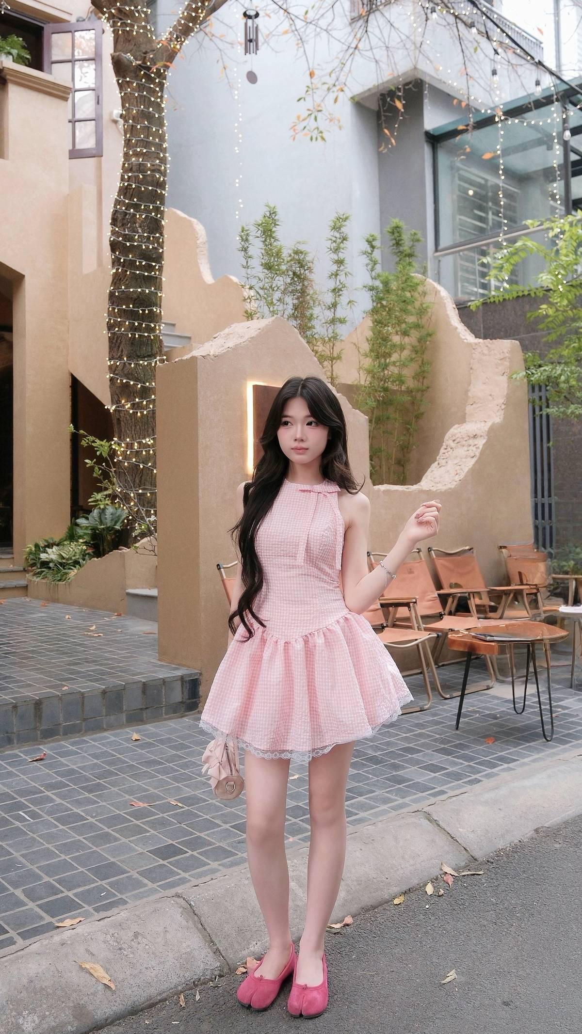 谁能拒绝软fufu的甜妹穿搭啊!这套直接把少女感焊在身上✨ 粉白格纹挂脖裙也太会了吧! 挂脖设计完美露出肩颈线条, 蝴蝶结领口甜到心巴, 收腰+大裙摆的组合, 直接把腰臀比拉满,秒变漫画身材~ 裙摆的蕾丝花边更是点睛之笔, 走动间自带灵动氛围感, 温柔又娇俏,纯欲感直接拉满! 浅粉格纹自带柔光滤镜, 显白又减龄,黄皮姐妹也能放心冲, 搭配同色系迷你小包, 整套穿搭甜而不腻, 约会、探店、下午茶都超适配, 妥妥的韩系女主既视感💖 甜妹穿搭 挂脖连衣裙 粉格裙 约会穿搭 纯欲风 少女感穿搭
