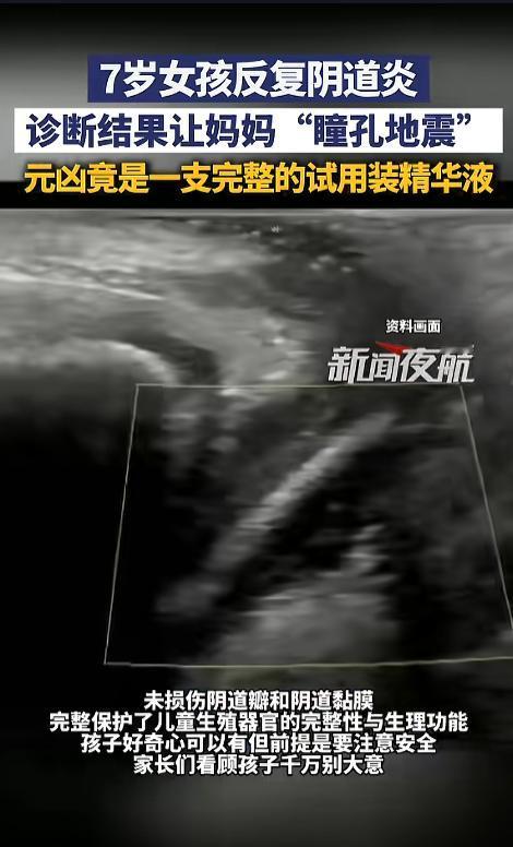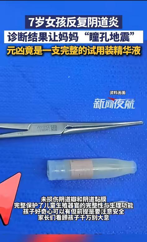 “又是好奇惹的祸!”近日,广东,一对儿母女焦急地到医院求诊,起因是女儿的阴道炎反复发作,各种治疗下来还是没好。医生耐心地劝导小女孩,最终她说,以前塞了个东西进去。这可把妈妈吓得不轻!网友:相关的教育得跟上啊! 据媒体4月9日报道,这对儿母女是从惠州,专程来到深圳求医的,患病的女儿才只有七岁,但是阴道却反复发炎,吃药、清洗、抹药都不见好转。最后没有办法,来到大医院求医。 医生听完之后,也觉得非常奇怪,就问起了女孩儿的经历。在医生的温柔劝导下,小女孩终于说了出来,一个月前,她自己塞了个圆珠笔粗细的东西进去。孩子妈妈听到这儿,直接瞳孔地震,震惊的说不出话来。 考虑到小女孩年纪实在太小,担心伤到孩子身体,医生先给她做了一个内镜检查,异物竟是一支试用装精华液。随后又采用异物取出术,顺利的给取了出来,一点没有伤害到孩子的器官。 网友看后表示,孩子一定得看好教育好,好奇很正常,但是家长要进行及时正确的引导,得让孩子明白这么做的后果是什么。往身体里塞东西的新闻,曝出来的越来越多了,这些都是反面教材,家长朋友们一定要重视起来! 信息来源:《4月9日(发布)。7岁女孩反复阴道炎,诊断结果让妈妈“瞳孔地震”,元凶竟是一支完整的试用装精华液》新闻夜航
