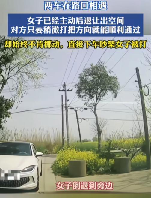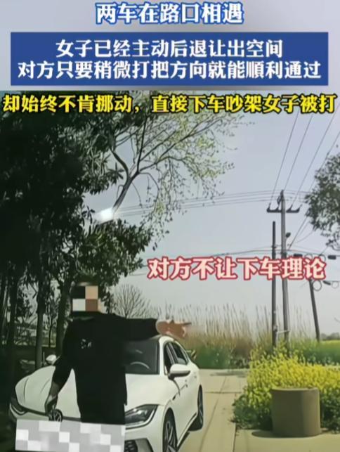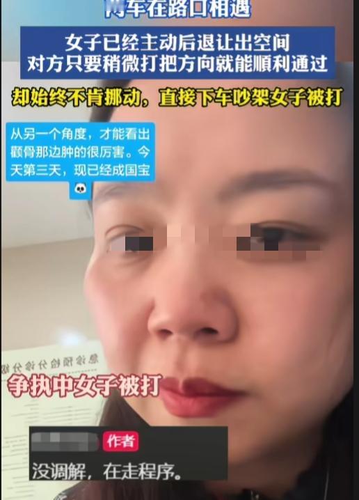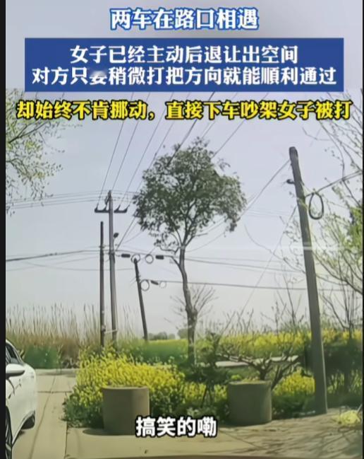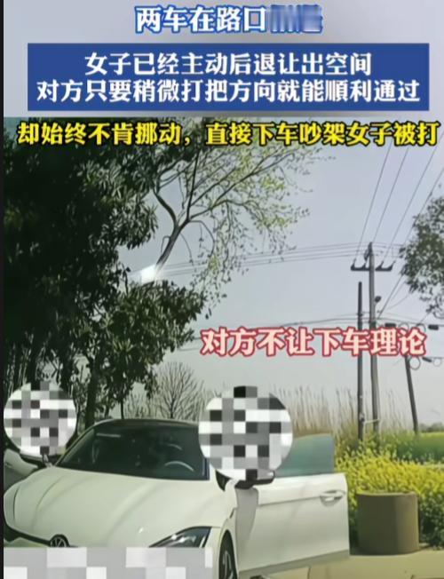 支持不和解,必须干到底,太嚣张了! 江苏,两车在路口相遇,女子已经主动动后退让出空间,但是对方始终不肯挪动,直接下车理论,争执中女子被打了。女子声称,没调解,在走程序。 白车路口还没拐进来,就看到女子车了。按照先出后进的顺序,理应白车让女子。没想到白车没让,直接拐了进来。 女子主动倒退到旁边,于是对着白车喊了一嗓子“你往那边走一走呢,你打一下不就行了吗?我都让成这样子了。搞笑的嘞。” 没想到,白车后座直接下来一个男的来找女子理论,争执了几下。接着白车前座下来两个人,争执中女子被打。三天了,右边颧骨还是肿很厉害。 太嚣张了,既没技术又没素质!有理打都不对,更何况还没有理。支持女子报警,定伤,让他们进去+赔偿!医药费、误工费、后续修复等费用,该赔的一分都不能少。