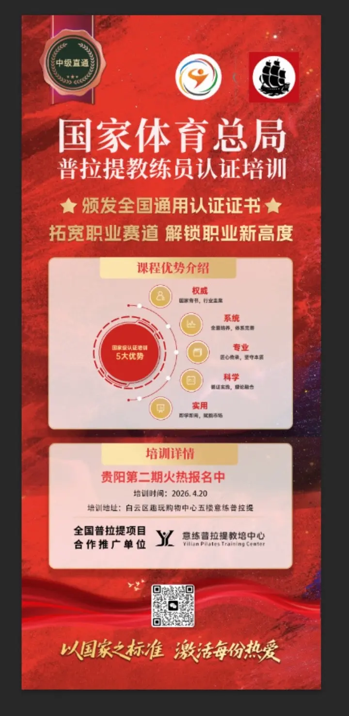 意练普拉提 · 第二期教练教培 🔥 从基础到精通,开启你的普拉提职业新征程 【意练普拉提 · 第二期教培】 进阶开启,只等你来! 从基础到实战,从动作到教学 学完即代课,持证即上岗 小班精讲·实战落地·就业保障 名额紧张,速抢席位!