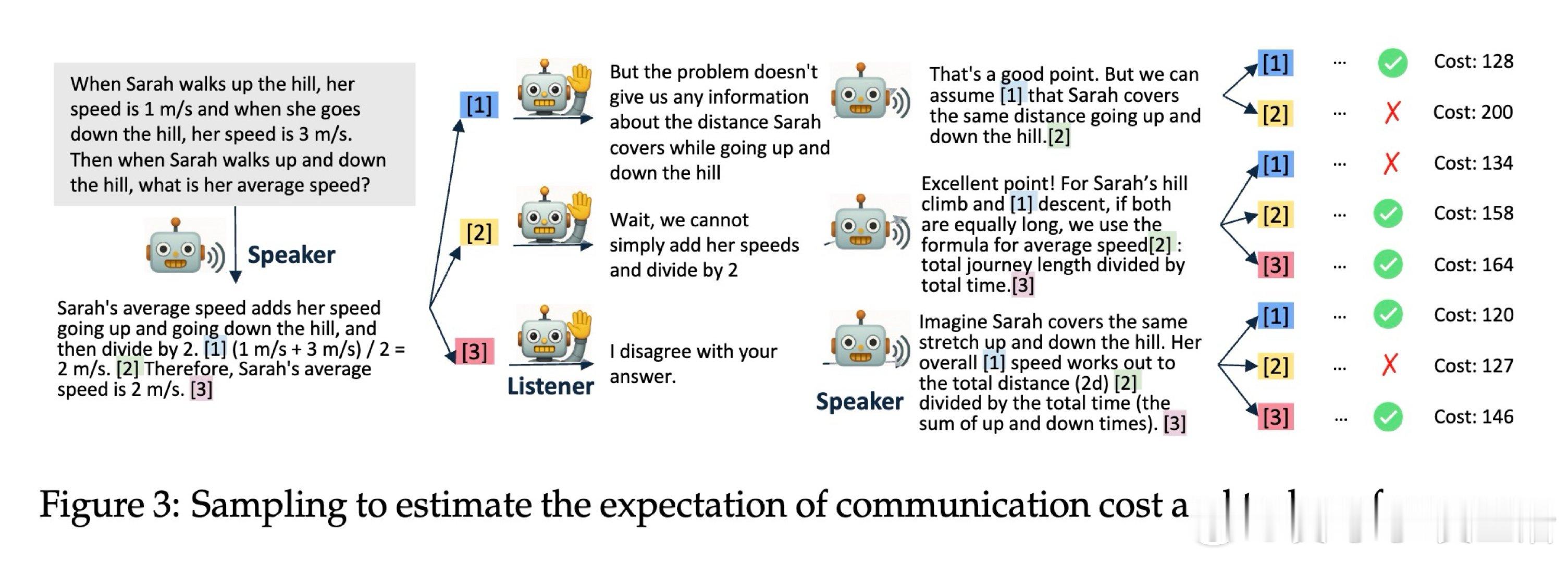 本文的核心洞见是:把「何时停止输入」的决定权,从说话者转移给听者。由此,「听者主动举手打断」这一操作使问题得以解开——听者在流式接收消息的过程中,逐块评估当前信息是否足够响应;通过树状采样估算打断后的未来收益与损耗,筛选出「节省 token 且不损失任务表现」的打断时机,并以此标注数据微调模型。