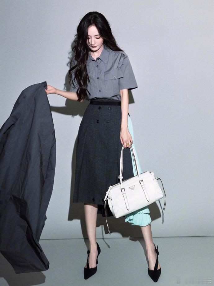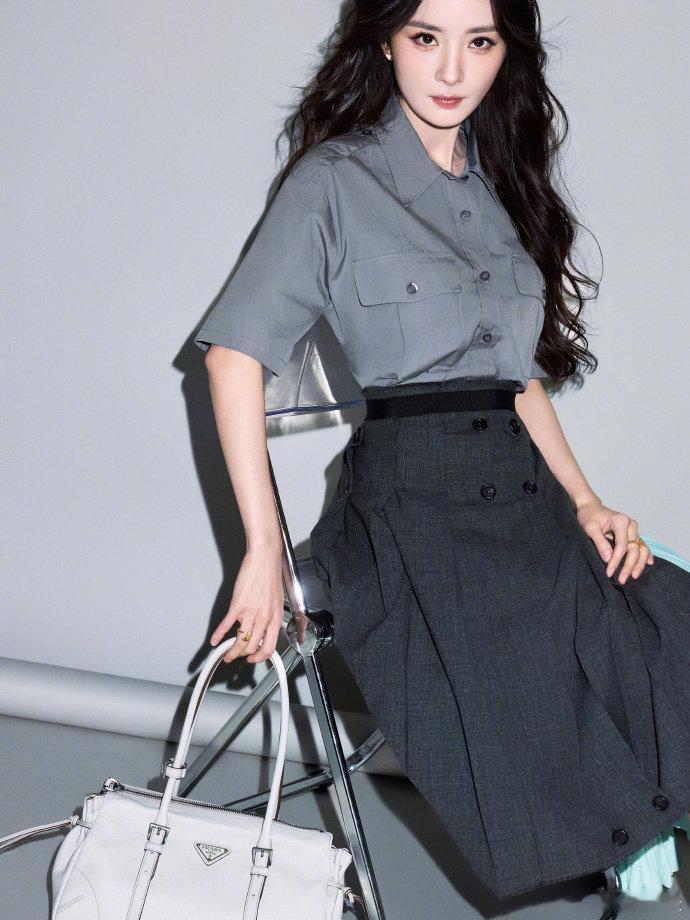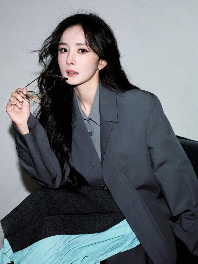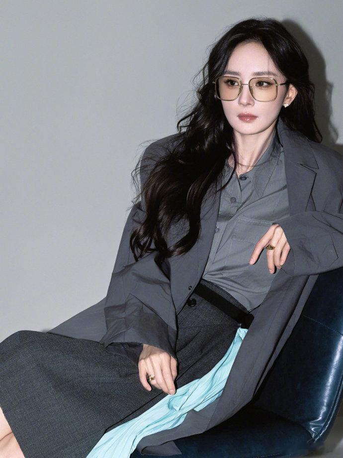 低饱和灰调西装+衬衫 杨幂把高级版玩明白了!