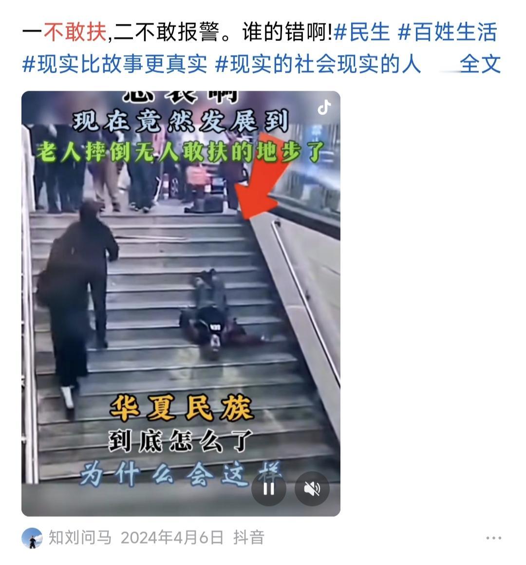 老人跌倒摔倒为什么不敢扶?我说一句扎心窝子的话,做好事的成本太高,做恶的成本太低。今天清晨和另外一位同事聊起这个话题,其实心里挺难受的。我们60后,70后这一代人,小时候看到老人小孩跌倒在地上,赶紧跑过去扶起来,不带丝毫犹豫的,那个年代把这种事情叫做好人好事,要受表扬的,经常写进作文里面,这叫社会风气。现在看到老人跌倒,我们恐怕得先看看周围有没有监控,旁边有没有人证明,会担忧扶起后之后会不会被老人讹诈,这真的是令人痛心的事情。 为什么说做恶的成本太低。通常老人以讹诈的目的摔倒在地上,如果没有成功,拍拍屁股就走了,不会有任何的惩罚和警戒,就意味着一定有下一个人上当受骗,这也是令人痛心的事情。 那么这件事情该如何破局?