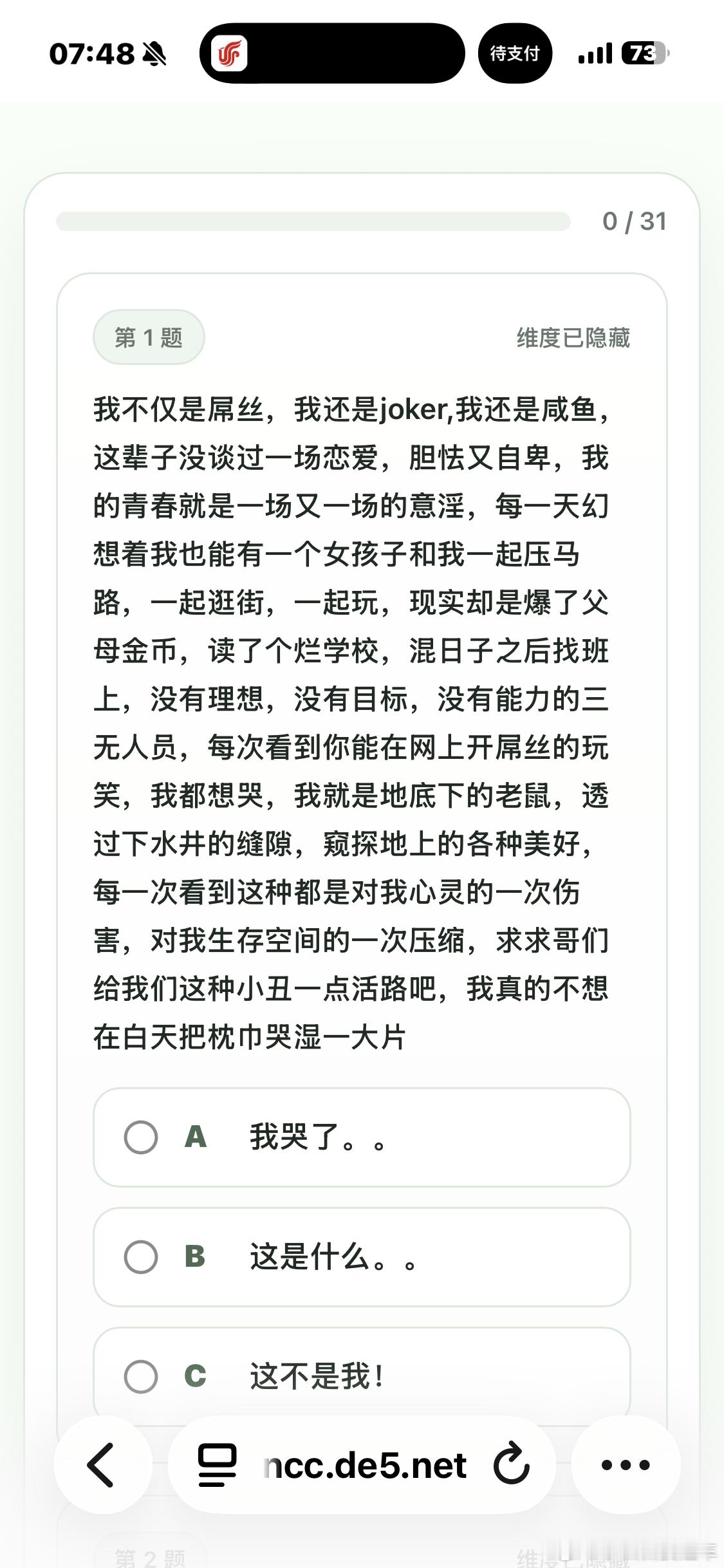 sbti人格测试直接被第一题震慑了……🔗放评论区,一起来震慑一下呀