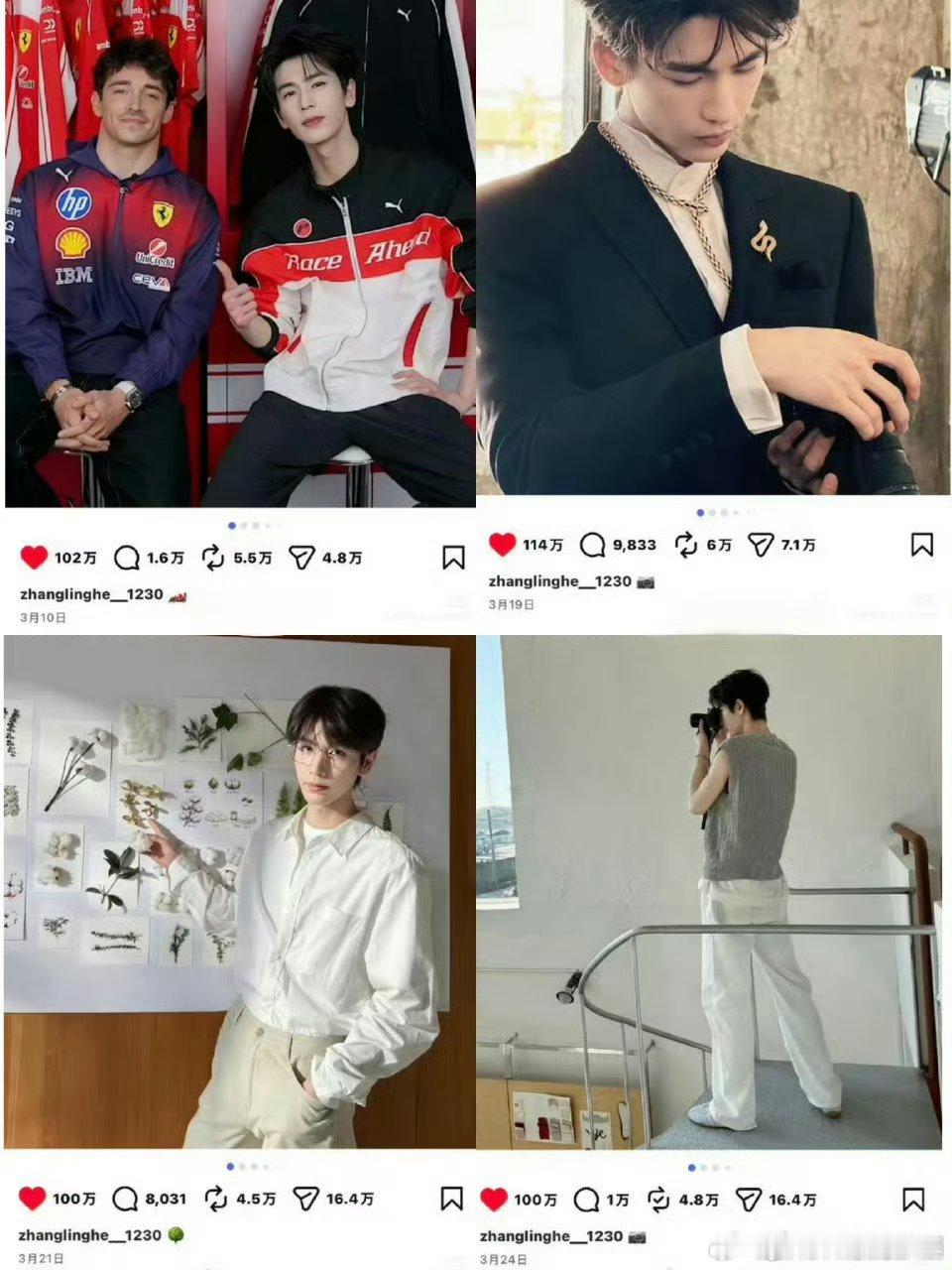 逐玉庆功宴真要来了张凌赫 ins 20小时破百万赞!第五个百万赞了!逐玉庆功宴真