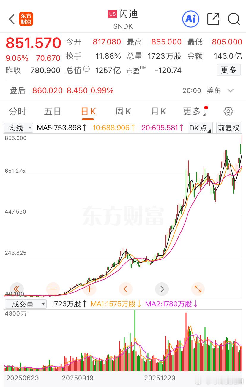 闪迪 一年时间⌚️从30附近到900元附近 这是谁的部将股票股票a股