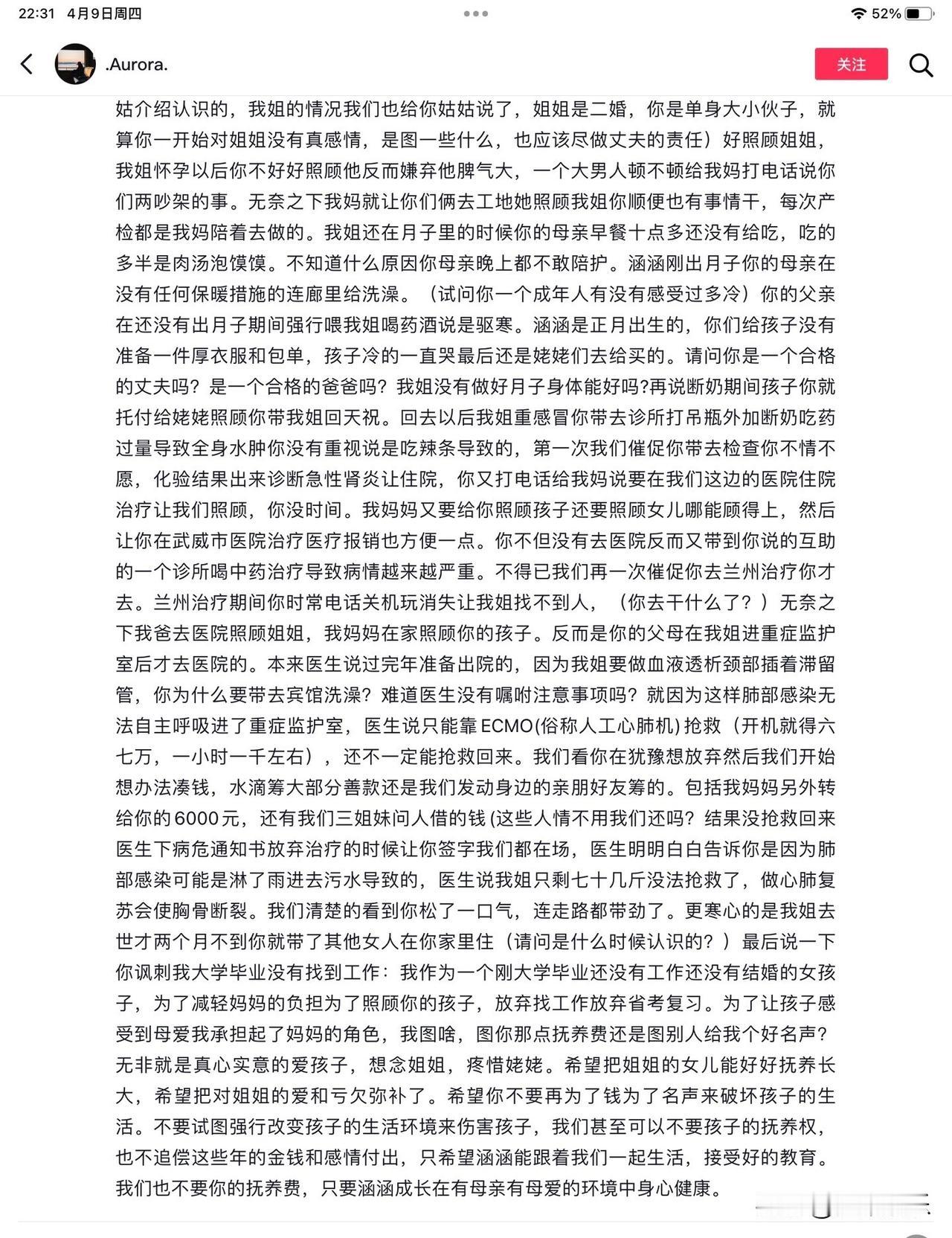 这个男的太吓人了,他带涵涵妈妈去宾馆洗澡导致死亡的!看最后医生说没法抢救了男的还松了一口气,快查姐姐有没有大额人身保险,故意给涵涵妈妈淋水让水呛她的吧我感觉。 兰州治病期间总关机找不到人……去世两个月就带了其他女人回家……插着透析的管带去洗澡还让管里进了污水……大夫说放弃松了口气……说这没预谋我不信!现在抢孩子肯定是又有什么不可告人的动机!! 还有最一开始在月子里重感冒,公公给她强行灌中药水,这种病最不能碰的就是中药🌿 他们一家人是不想让涵涵妈妈好吧! 各执一词,总有人说谎,希望双方能拿出证据来。