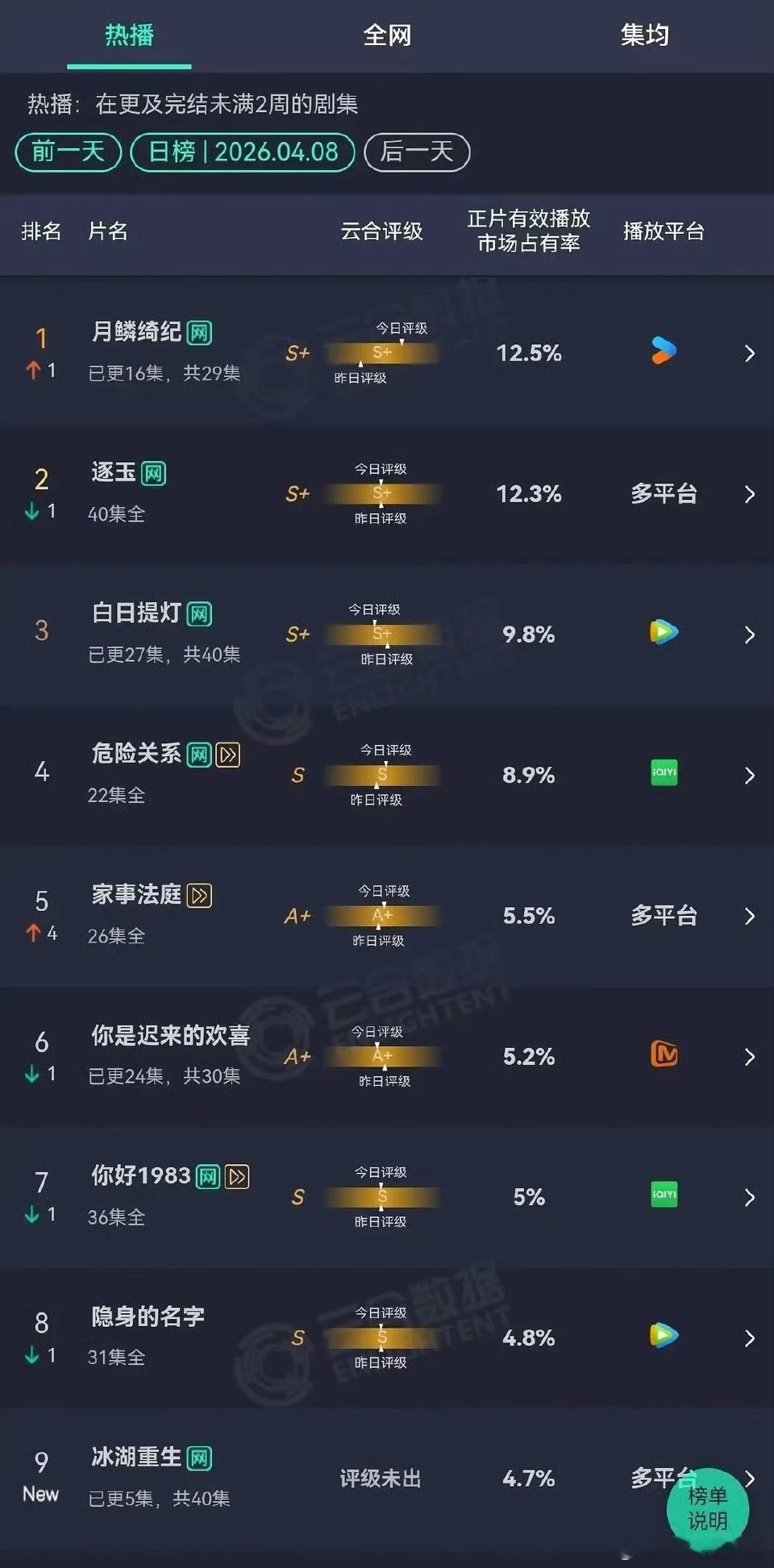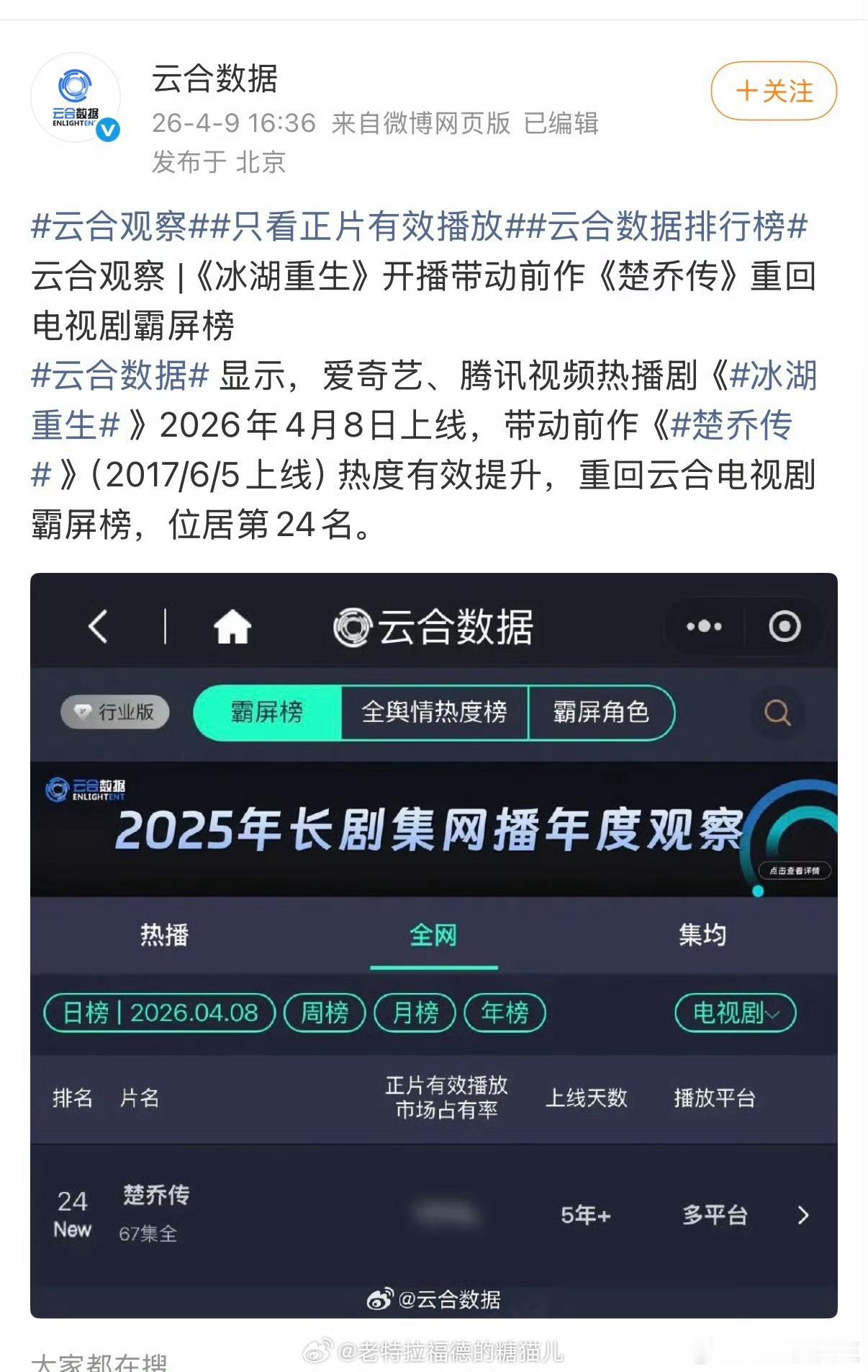 双平台站内热度血扑,次日热度还不如首日。双平台广告全部萝卜,百指超低,还在继续下降。云合血扑开局,但由于营销热度极大,反而让前作赵丽颖、林更新的《楚乔传》回榜。