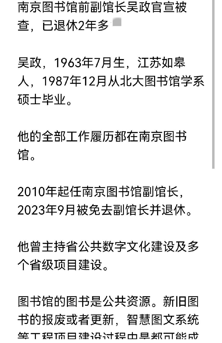 南京,图书馆已退休的前副馆长被查了? 啥级别的干部? 不过同问,图书馆有啥可拿的呢? 南京