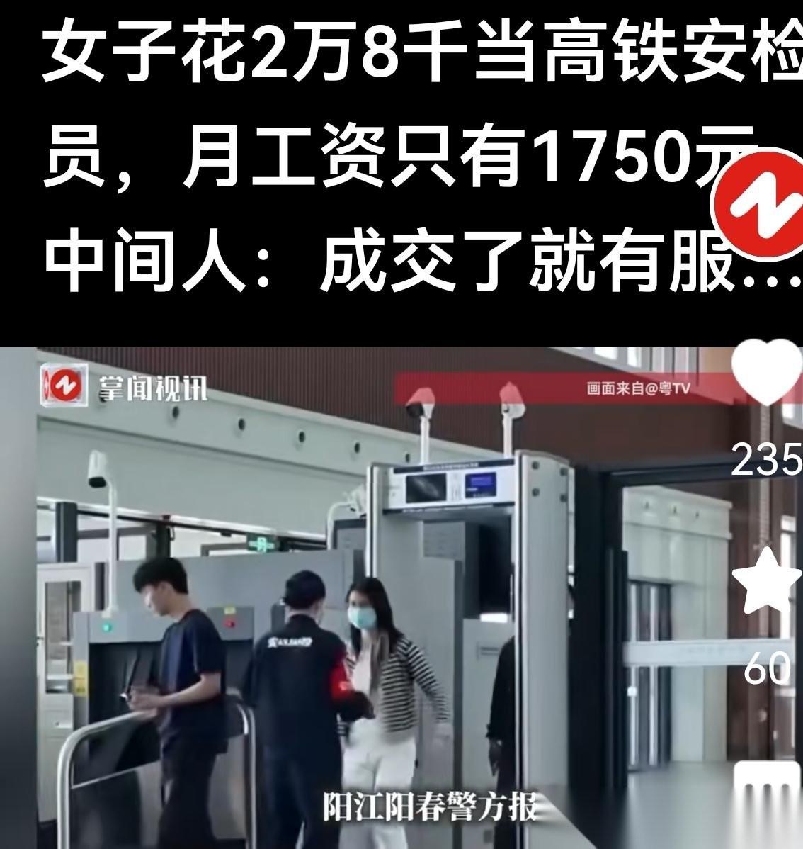 河南,女子花28000元买了一个“高铁安检员”内部名额,上岗后才知:月薪仅1750元,每天站16小时,不吃不喝要大半年才能勉强把坑位费填平。更憋屈的是,这事儿连报警都碰壁。 黑中介鬼精得很。活儿确实给你找了,班也让你上了,这一下就把刑事诈骗的红线给绕了过去,硬生生扯成了民事纠纷。 拿着张手写白条去打官司?精力搭进去了,钱也花了,最后能要回来的概率,悬。 这种套路早就烂大街了,怎么偏偏总有人往坑里跳? 看着是找工作心切,骨子里还是迷信所谓的人情和“潜规则”。总觉得没个亮眼的学历,想找份体面差事,就非得托关系、塞票子。 钱砸进去了,以为买到了安稳的后半生。结果呢?不过是主动给骗子送去了年终奖。 同情归同情,可这事真不全怪机构太懂拿捏人。 稍微留意过公招的人都门儿清,现在的铁路或者国企正式工,是个什么阵仗?哪家不是公开招考,大批人挤破头去争一个岗。 两三万块钱就能走后门塞进去?这未免把正规考试想得太儿戏了。 黑心机构就是盯准了这个认知差。随便找个外包的苦力活,包上一层“金饭碗”的皮,轻轻松松就把几万块套进了自己腰包。 任何一份正经工作,核心逻辑都是老板花钱买你的时间。 还没入职就让你先大出血砸钱的,别犹豫,百分百是冲着你本金来的。 少惦记那些不靠谱的隐秘捷径,护好自己的血汗钱比啥都强。 对此,你怎么看?