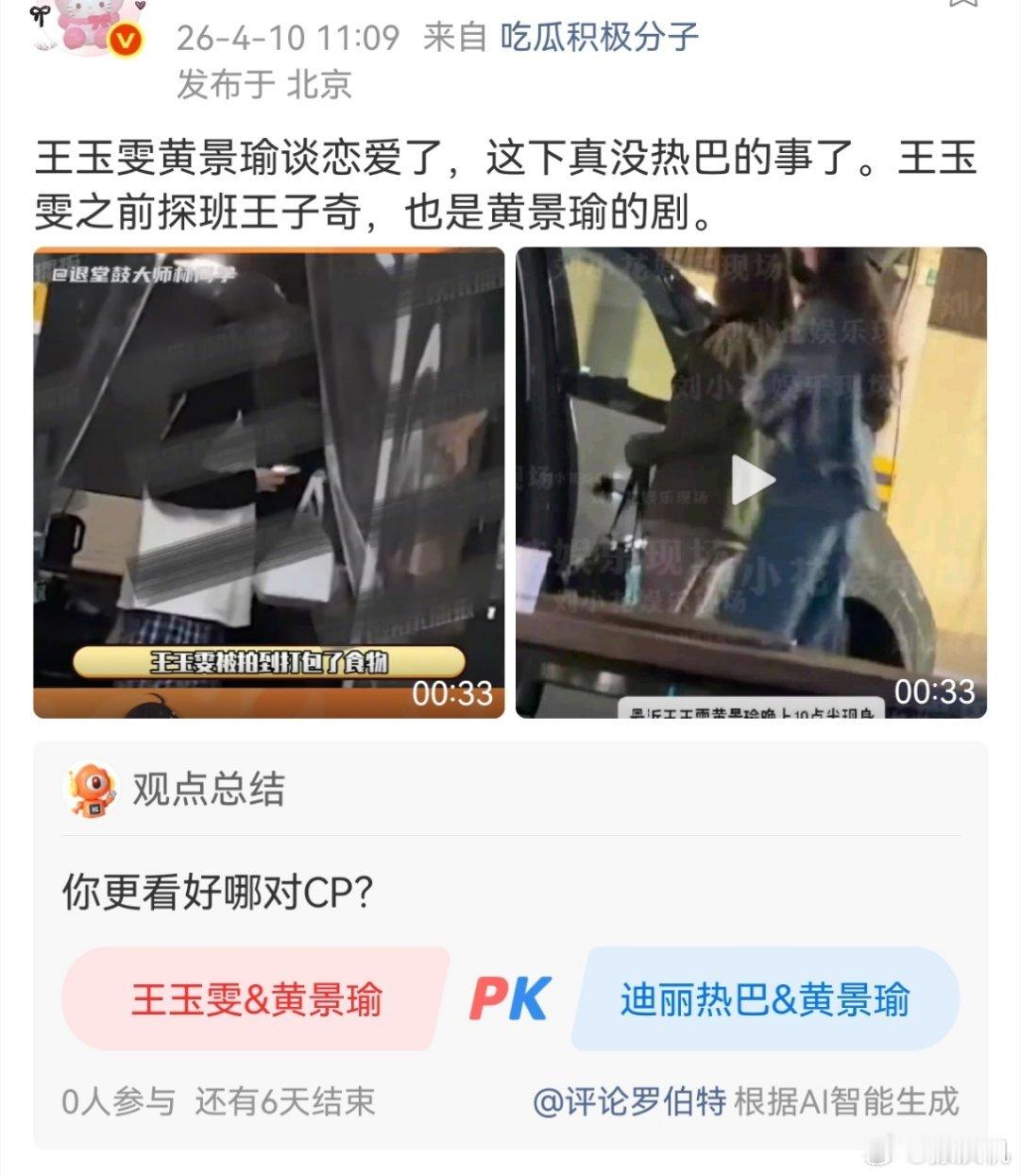 最终没想到是黄景瑜和王玉雯 曝黄景瑜王玉雯恋情
