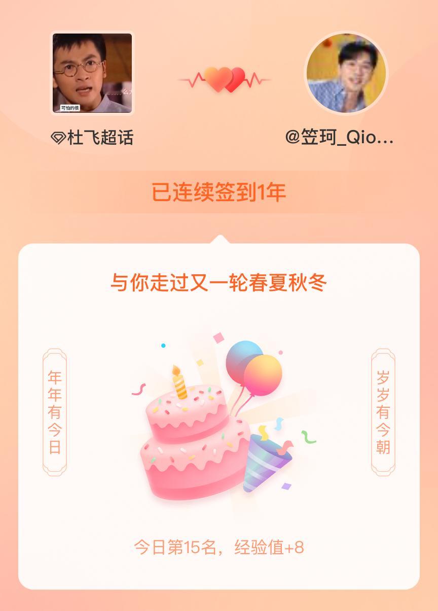 杜飞我在杜飞连续签到1年啦,还要一起走过很多个春夏秋冬~