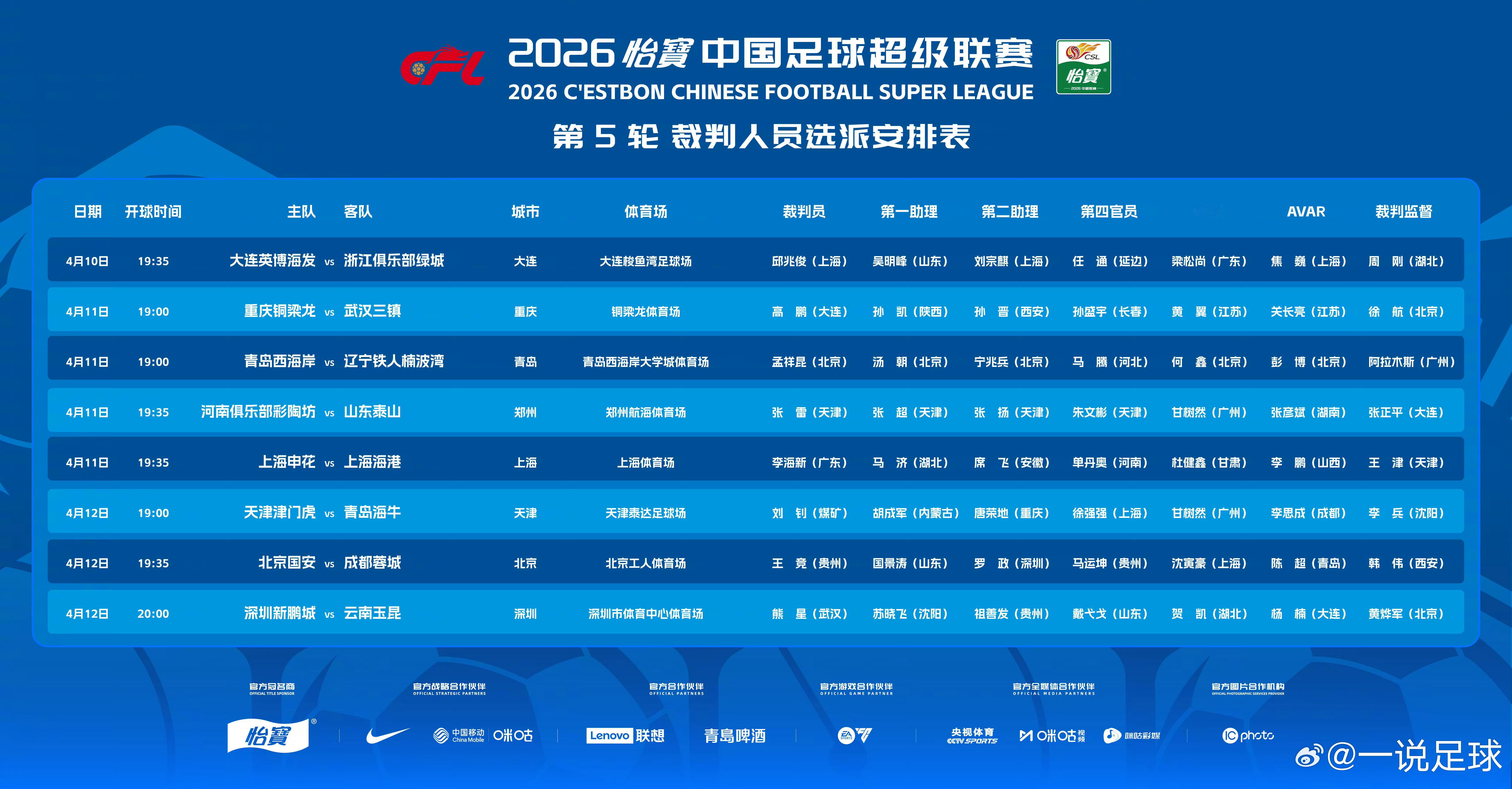 同时,来自武汉足协的熊星将迎来了升入中超以来的首哨,将执法深圳新鹏城vs云南玉昆的比赛,值得关注!