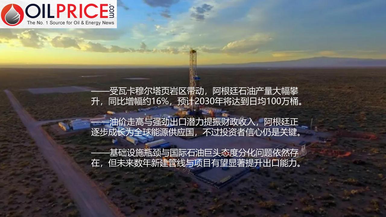 页岩油气开发推动阿根廷石油产量创历史新高 一年前,在市场持续热议原油严重供应过剩的背景下,全球任何地区石油产量上升的消息,只会让原油交易商对油价更加看空。而如今,世界突然被燃油配给制、石油严重短缺切实风险的报道笼罩,任何新增供应的消息都成了令人欣慰的转变。阿根廷便是其中的典型。 今年早些时候,阿根廷原油日均产量达到84.7万桶,该国正全力开发美国以外规模最大的页岩油气产区——瓦卡穆尔塔区带。据阿根廷能源行业协会数据,依托这一产区,阿根廷石油日产量有望在2030年突破100万桶。 2月份原油日均产量同比增长15.9%,而瓦卡穆尔塔区带所在的核心产区内乌肯盆地,产量增幅更是高达30.4%,其产量占全国总产量的77.4%。阿根廷正迅速跻身全球石油出口国行列。 合众国际社援引阿根廷一家咨询机构的行业报告称:“中东冲突推升布伦特原油价格,直接利好阿根廷石油出口。在此背景下,该国迎来战略机遇,可推进液化天然气开发,成为亚欧地区可靠的能源供应方。” 国际金融协会一位经济学家表示,只要阿根廷政府能让投资者确信,即便未来政权更迭,能源行业法律框架仍将保持稳定,该国石油行业的良好态势便可延续。马丁·卡斯特利亚诺接受《布宜诺斯艾利斯时报》采访时指出:“这一转变更多是结构性而非周期性的,核心驱动力是瓦卡穆尔塔区带的非常规石油出口。”他还提到,国际油价上涨为石油出口带来额外收入,原油价格每桶每上涨10美元,出口收入就将增加17亿美元。 换言之,阿根廷能源行业前景向好。但这并未吸引国际石油巨头扎堆进驻瓦卡穆尔塔区带。事实上,埃克森美孚两年前便撤出该产区,在该区带热度上升时套现离场,转而聚焦圭亚那等其他资产。今年早些时候也有消息称,尽管瓦卡穆尔塔区带产量持续攀升,壳牌仍在考虑出售其在当地的资产。 依托页岩油气开发,阿根廷已成为拉美第四大产油国。随着政府将本土能源产业发展列为优先事项,推动多项基础设施项目以提升瓦卡穆尔塔区带的油气外输能力,这一排名未来有望进一步提升。此前正是管线基础设施匮乏,导致部分国际石油巨头选择退出。而以阿根廷国有石油公司YPF为首的坚守企业,如今正收获红利。当地核心项目——连接瓦卡穆尔塔区带与大西洋沿岸的瓦卡穆尔塔南线管线,预计明年投入运营,初期将使该国石油日出口能力增加18万桶,最终扩至70万桶。 瓦卡穆尔塔素有“阿根廷二叠盆地”之称,不过其地质特征更接近美国伊戈尔福特区带,也有专家坚持认为其地质条件与二叠盆地更为相似。据估算,该页岩区可开采资源量为160亿桶石油与308万亿立方英尺天然气,位列全球第二大页岩气田、第四大页岩油田。