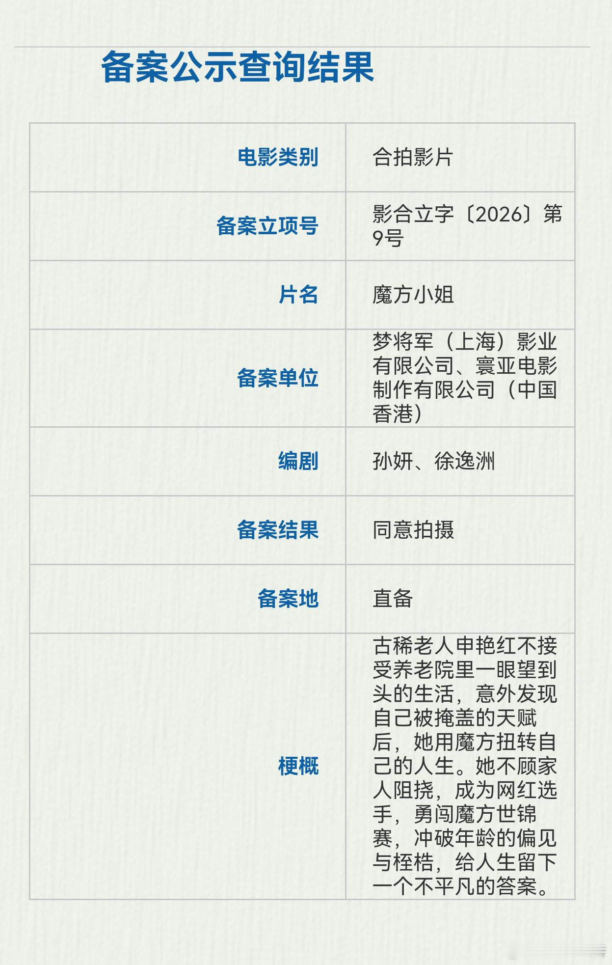听听温特怎么说 文牧野监制的电影《魔方小姐》重新备案。导演:白雪(过春天)主演:杨紫琼 刘昊然 白客赵艳红(杨紫琼饰)在养老院里总是隔三差五闹出幺蛾子,用一次次的“出格”举动对抗着衰老与偏见。一次偶然的机会,赵艳红结识了在夜市摆摊的魔方高手吴有为(刘昊然饰),并与魔方结缘。 谁都没想到,这枚小小的六面体撑起了她对抗命运的支点....