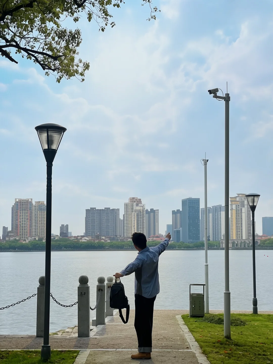 南昌真的不缺绝美公园🌿 新晋治愈系打卡地——青山湖西岸公园 有静谧樟树林、阳光大草坪、临湖步道,走走坐坐都超舒服。 特别适合I人,来一场「20分钟公园效应」 . 我挑了个微风轻拂的下午,背上七匹狼潮流胸包, 带上iPad、书、充电宝这些小物件,在公园整整放空了一下午📖☕ 这个包包日常通勤或外出游玩都很合适, 分层收纳小口袋,轻装但超能装,男生用刚刚好。 穿搭上还能前胸、后背两种背法,百搭又实用🖤 推荐给想在自然里慢下来的你~