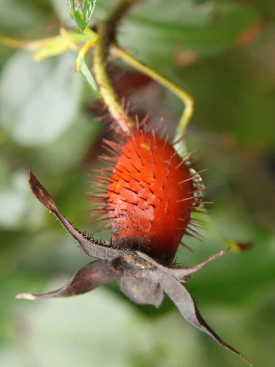 金樱子和缫丝花的果实经常被大家称为刺梨,大概是因为它们的果实都布满了密密麻麻的小刺吧。平时市面上我们所见的刺梨果脯、刺梨饮料其实是缫丝花的果实,它的果实是扁球形的(图9),而金樱子的果实则是梨形的(图7-8),它们都是蔷薇科的植物。