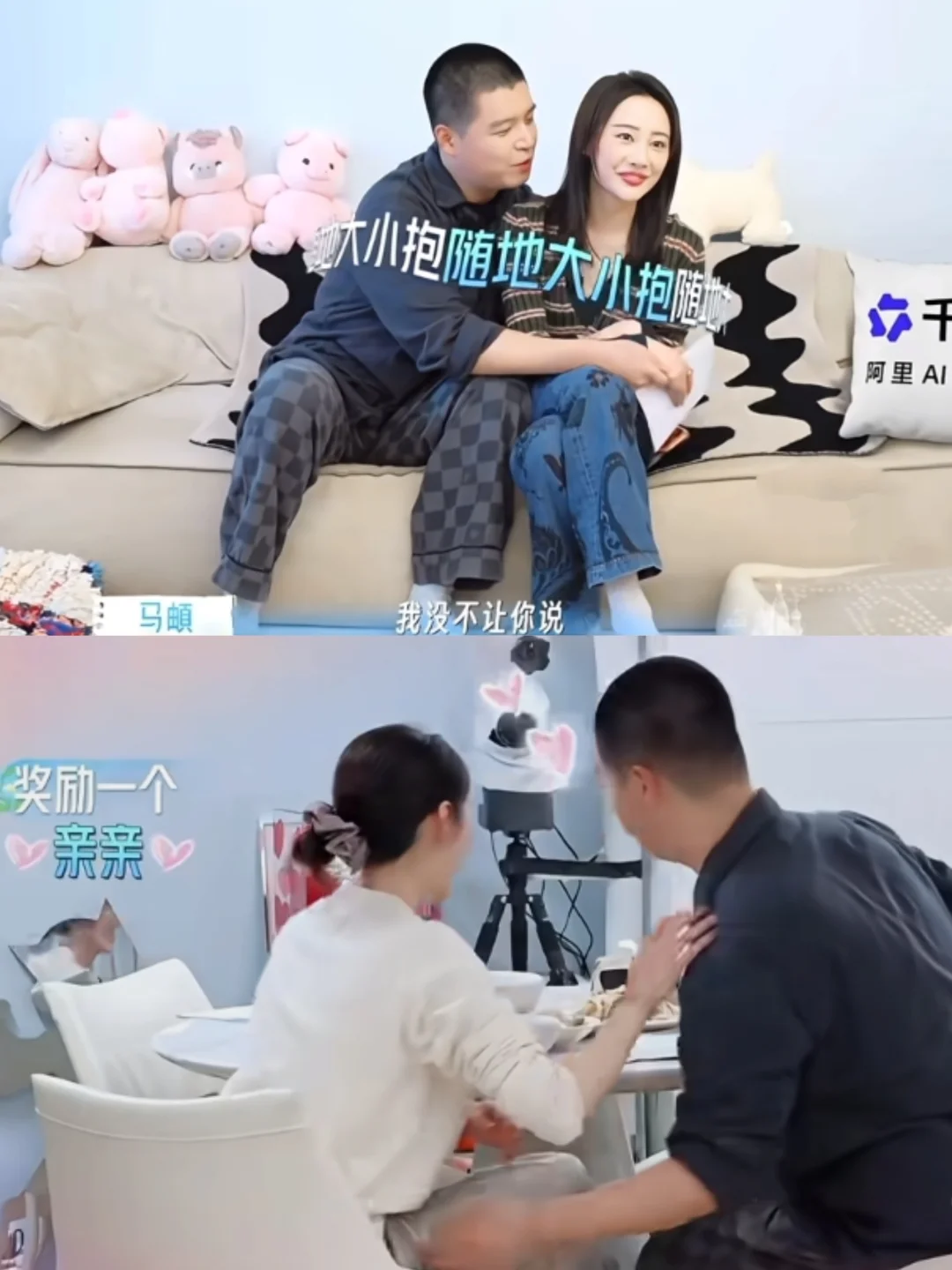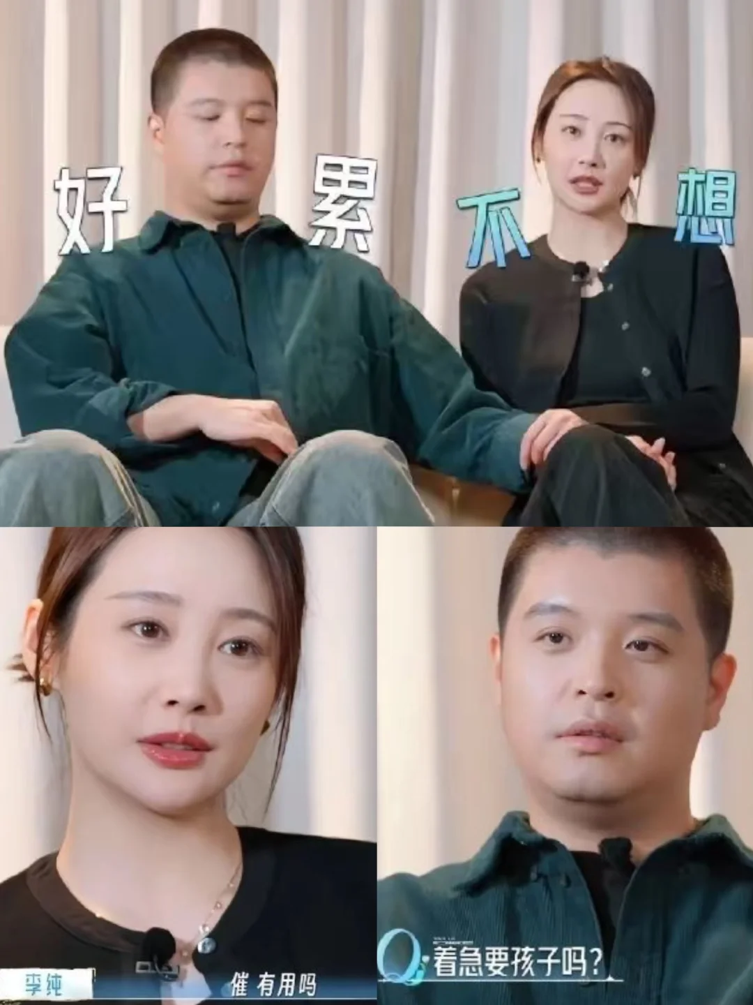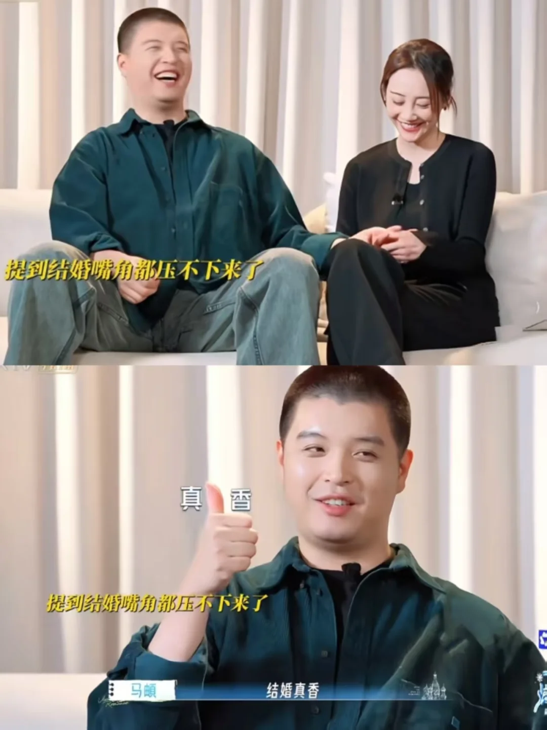 而且他们一点都不装,不办婚礼也不拍婚纱照,因为太累了。虽然都37、8岁了,但相处起来跟小孩子一样,互相叫“小宝”,录着节目有小争执但很快就会和好,想法几乎一样,被催生娃丝毫不慌,始终站在统一战线!
